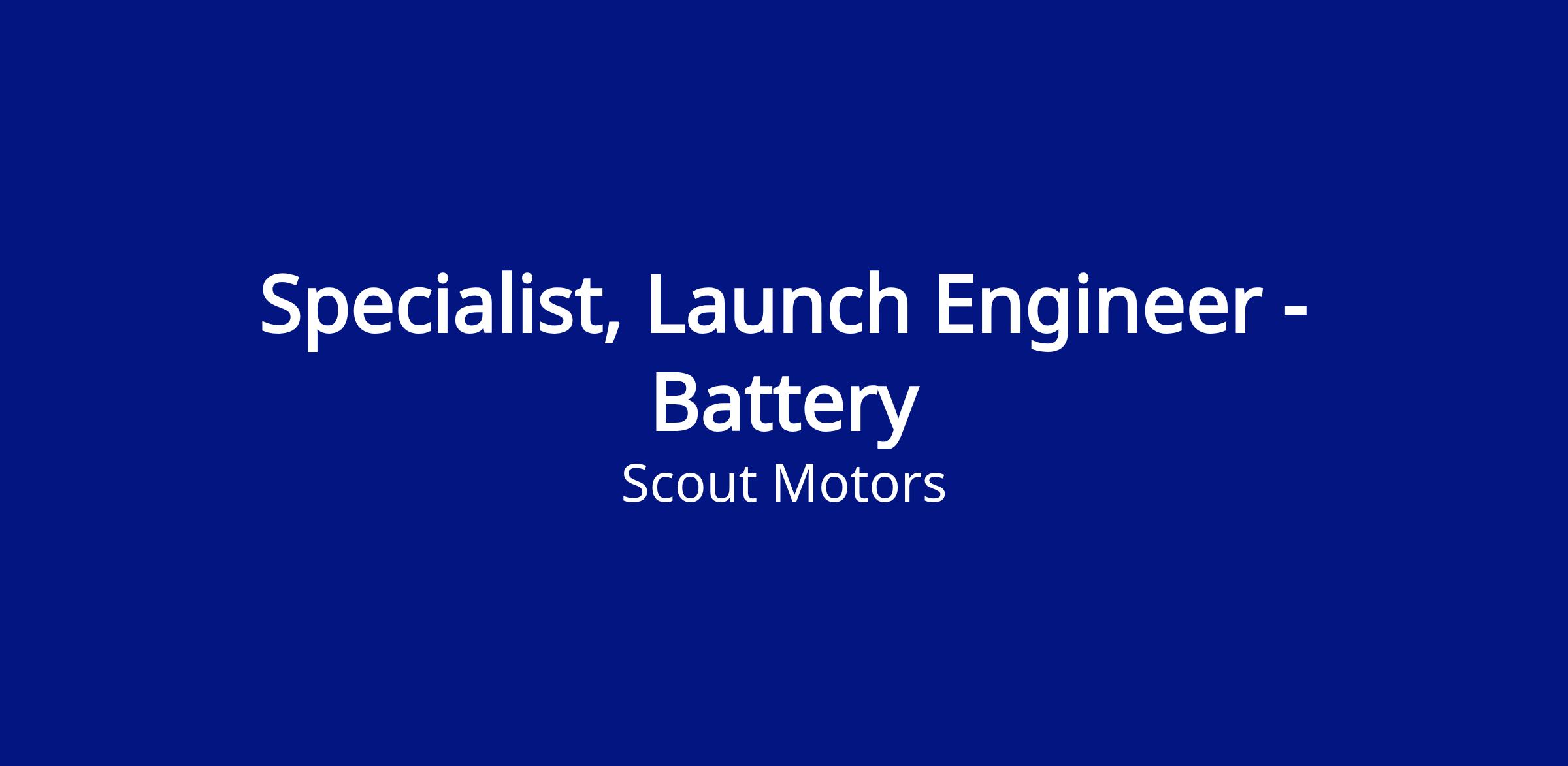 As a launch Specialist for battery at Scout Motors, you play a pivotal role in ensuring the seamless launch of our vehicles, specifically focusing on battery assembly related activities. Your responsibilities encompass a diverse range of technical and managerial tasks, contributing significantly to the success of the launch phase. Here's an overview of your key responsibilities: