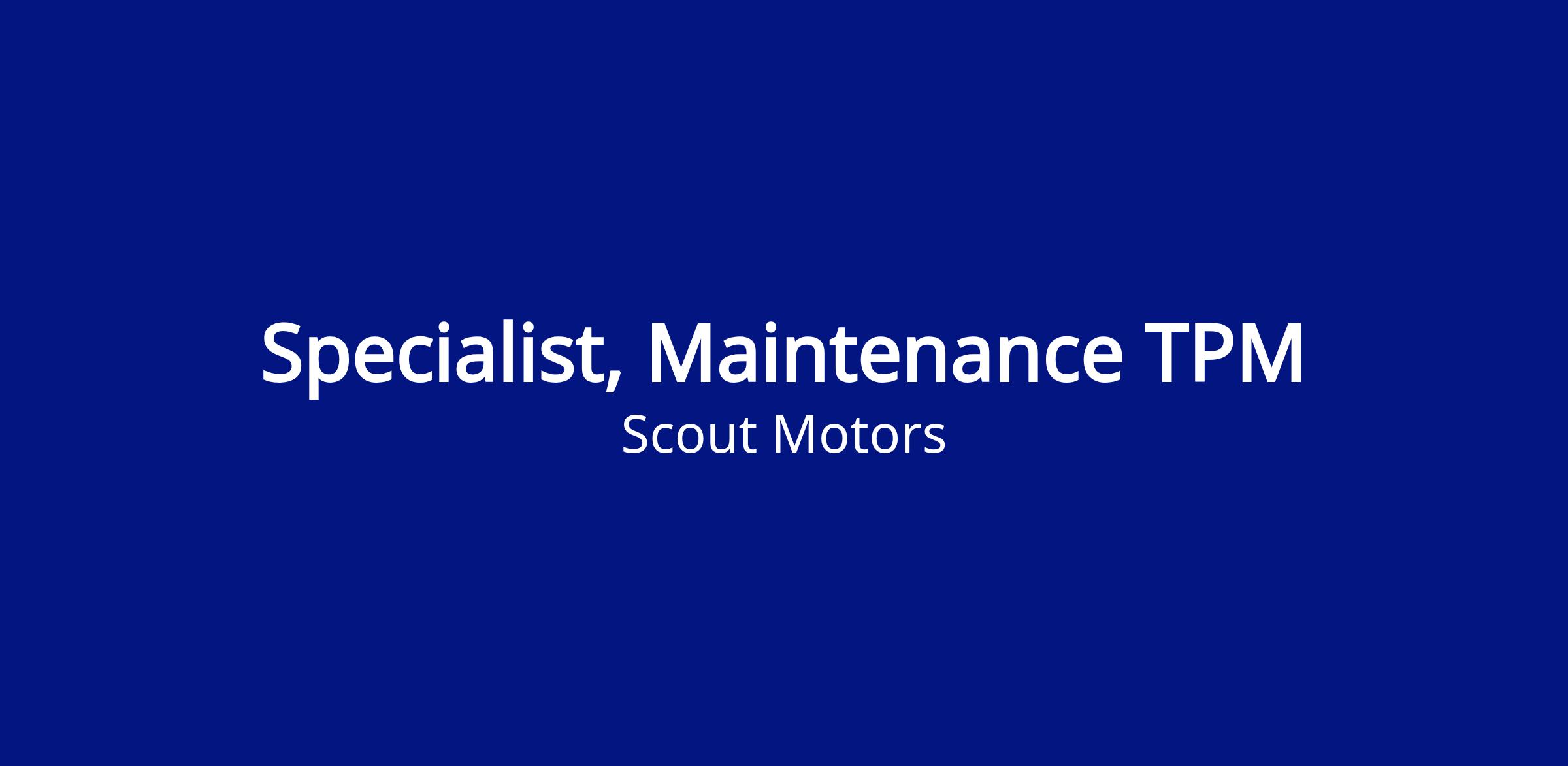 - The Maintenance TPM Specialist develops and leads the TPM Strategies of the Bodyshop maintenance department in a fast paced, high volume, manufacturing environment.