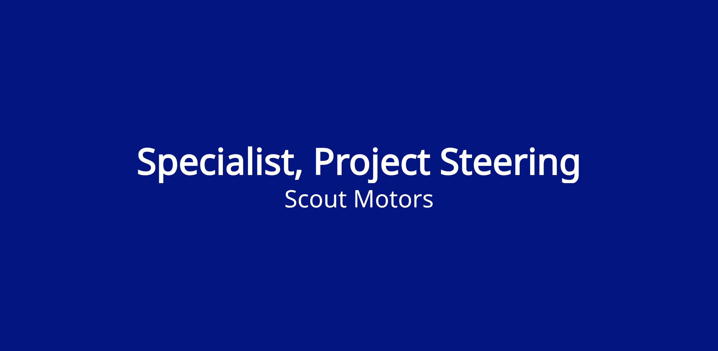 - The Specialist is part of the Plant Engineering Production Steering & Battery Team and is responsible for tracking and reporting of production equipment at the Scout Motors plant. The Specialist will report to the Project Steering Manager.