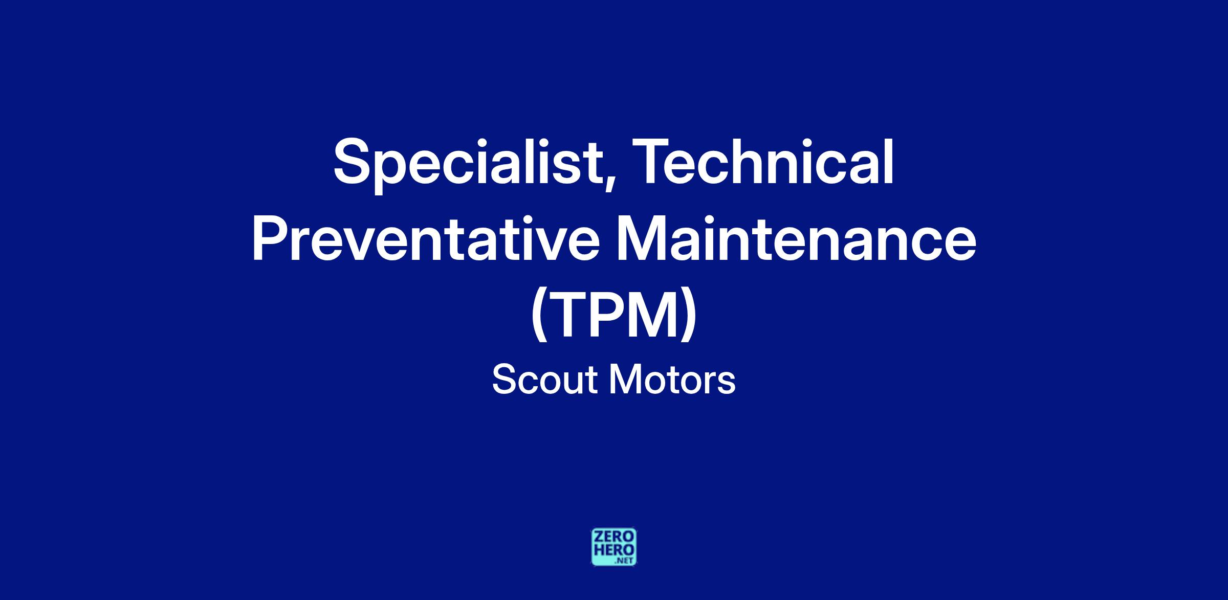 - The Specialist, Technical Preventative Maintenance develops and leads the TPM strategies of the Bodyshop maintenance department in a fast paced, high volume, manufacturing environment.