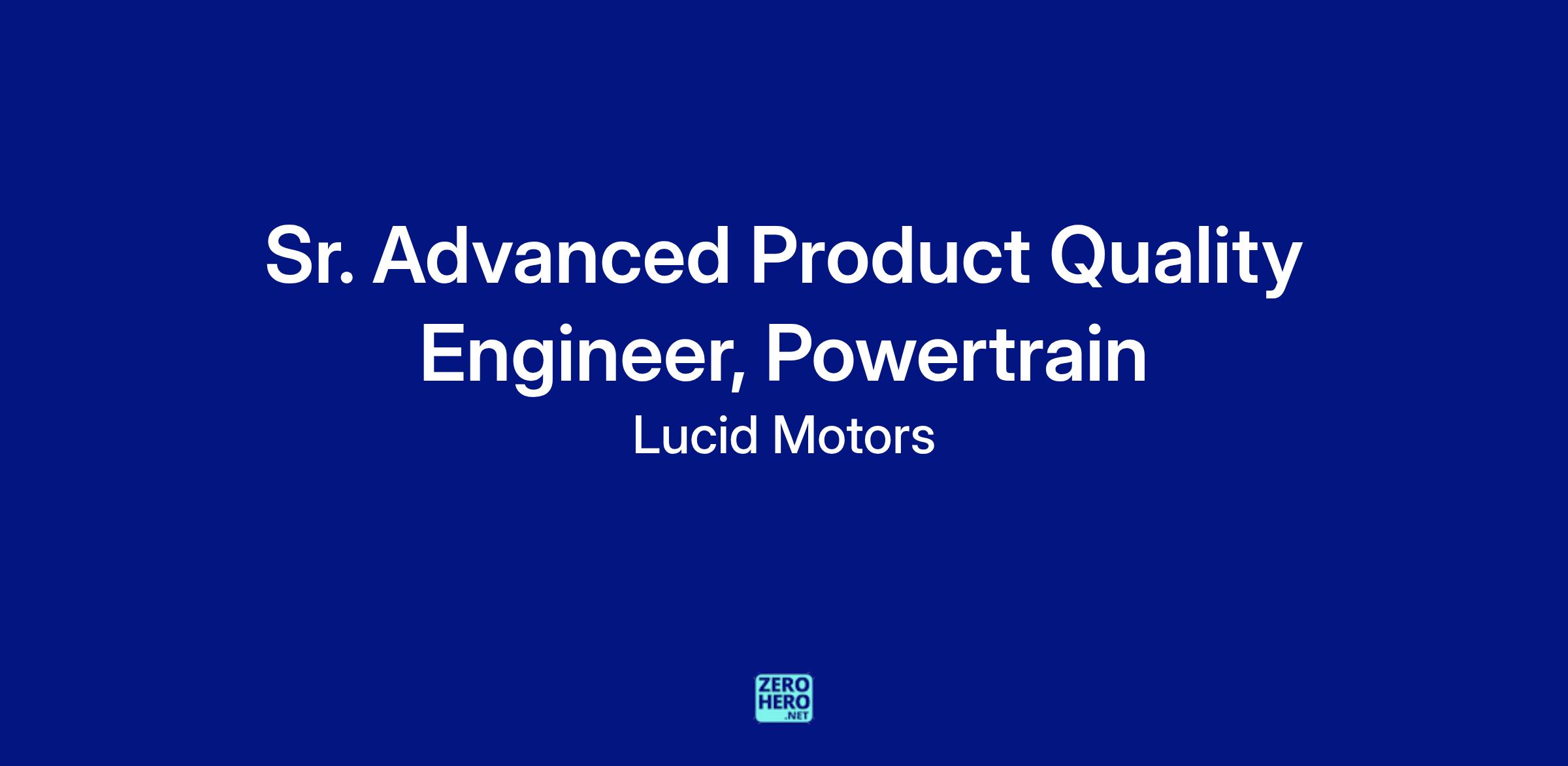 Lucid Motors is currently seeking an innovative Advanced Product Quality (APQ) Engineer for Powertrain to contribute, promote and drive best-in-class product quality at the various stages of the product