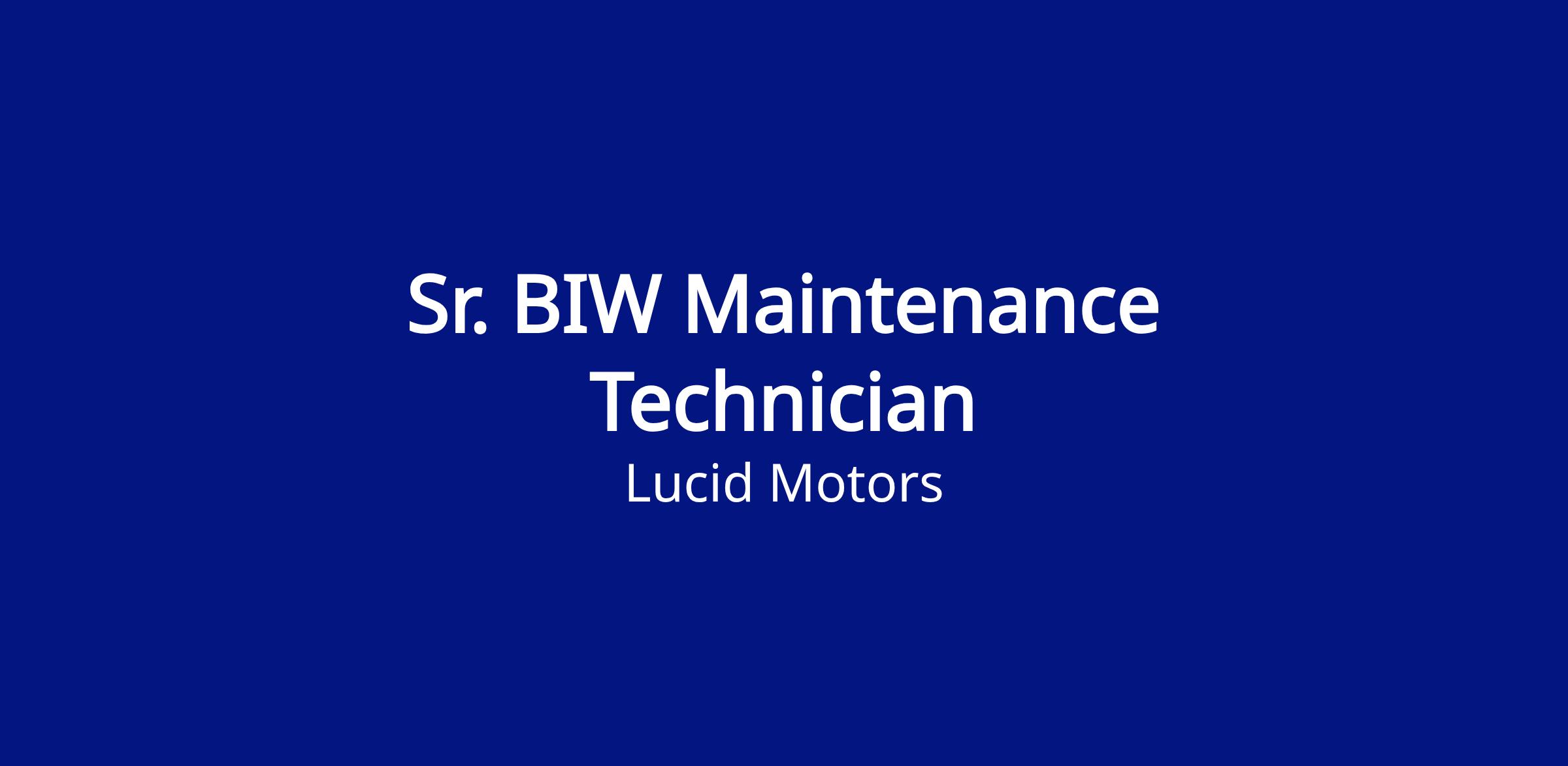 The Senior Maintenance Technician will work within the BIW team for the purpose of achieving a key result or group of aligned results. They must possess a general knowledge of mission critical directives and situations surrounding the building, process equipment, all areas inside the walls of the facility, lift assemblies, conveyors, etc. They must help to develop strategies to meet team and company goals. Reports to the various supervisors and managers throughout the production organization. The Technician must possess a working knowledge of standard automotive OEM process equipment, and related systems, be a problem solver, and be communicative and proactive in the execution of daily activities. Contribute to day-to-day operations and create reports to update the company in the event it is required. Must be able to perform under pressure, lead large teams, remain dynamic and understand urgency. The Technician must be able to practice teamwork and team building within our organization.