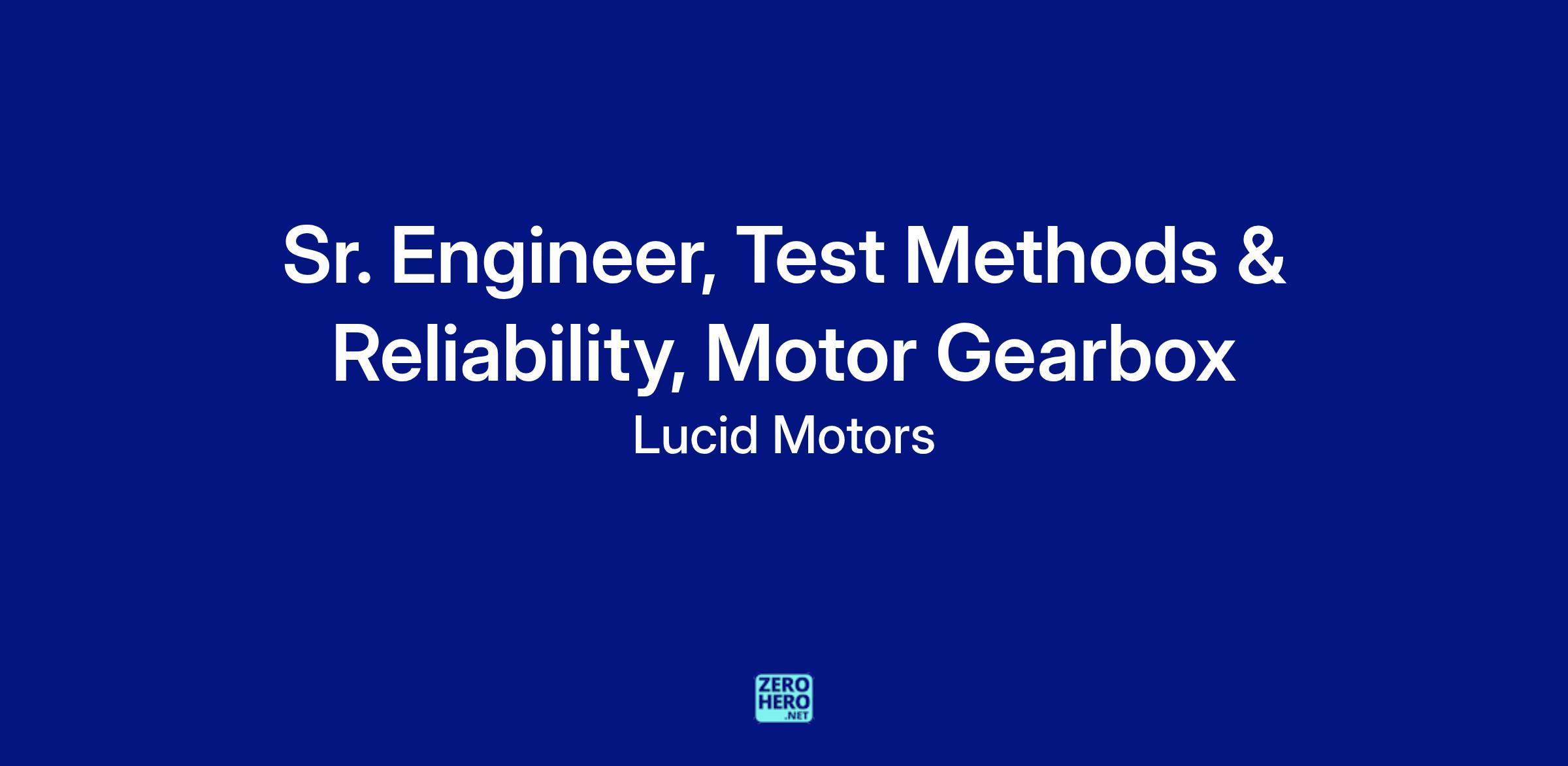 Lucid Motors is seeking a highly skilled Senior Engineer - Test Methods and Reliability to lead the development and execution of test strategies for motor gearboxes. This role is critical to ensure the durability, reliability, and performance of our electric vehicle drive units. The ideal candidate will have extensive experience in test method development, reliability engineering, and gearbox systems, combined with a passion for innovation and quality.