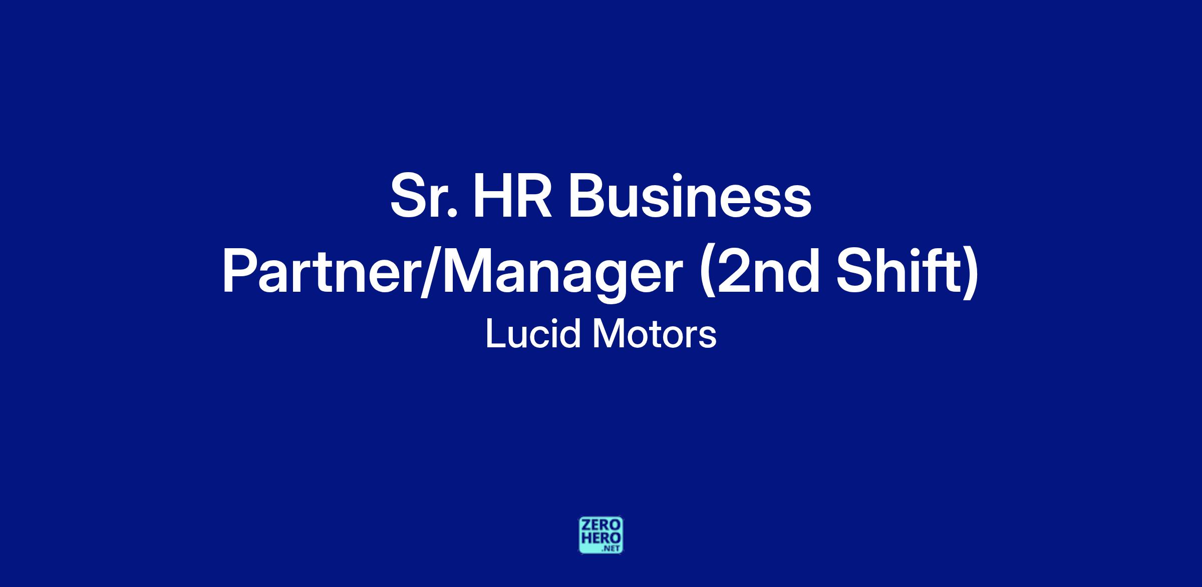 Lucid Motors is seeking a HR Manager/Sr. Human Resources Business Partner to support our fast-paced manufacturing plant during second shift operations. This role will be the sole HR representative onsite from 5:00 PM to 10:00 PM, providing critical support to Manufacturing Operations, Logistics, and Quality teams. The ideal candidate is confident in making decisions independently, thrives in ambiguity, and is comfortable working with minimal direction.