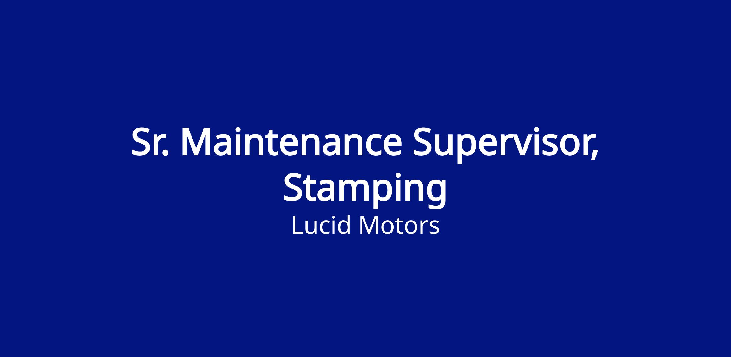 We are currently seeking a Sr. Maintenance Supervisor, Stamping. This position requires an experienced professional with the ability to manage up to 25 staff. The successful candidate will have spent considerable time launching new plants and/or new equipment in an automotive manufacturing environment. The Maintenance Supervisor position in the Stamping Shop will lead the day-to-day maintenance operations at our Stamping Shop in AMP-2 KAEC, KSA. In this position you will lead all maintenance activities on the plant shop floor. This is a unique opportunity to set up and run a world class plant to build a world class vehicle. You will get a lot of experience with EV car manufacturing, Stamping process/equipment technology, Professional Maintenance knowledge.