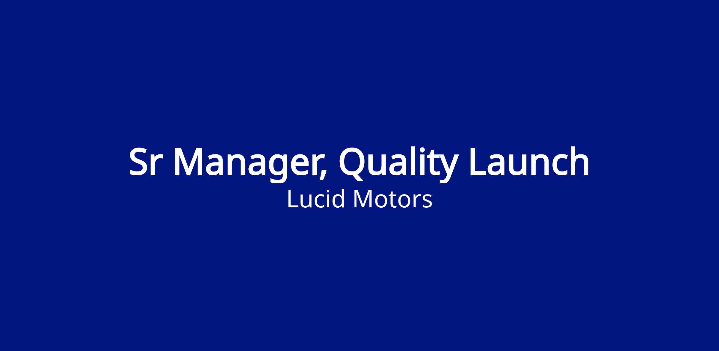 Sr Manager, Quality Launch