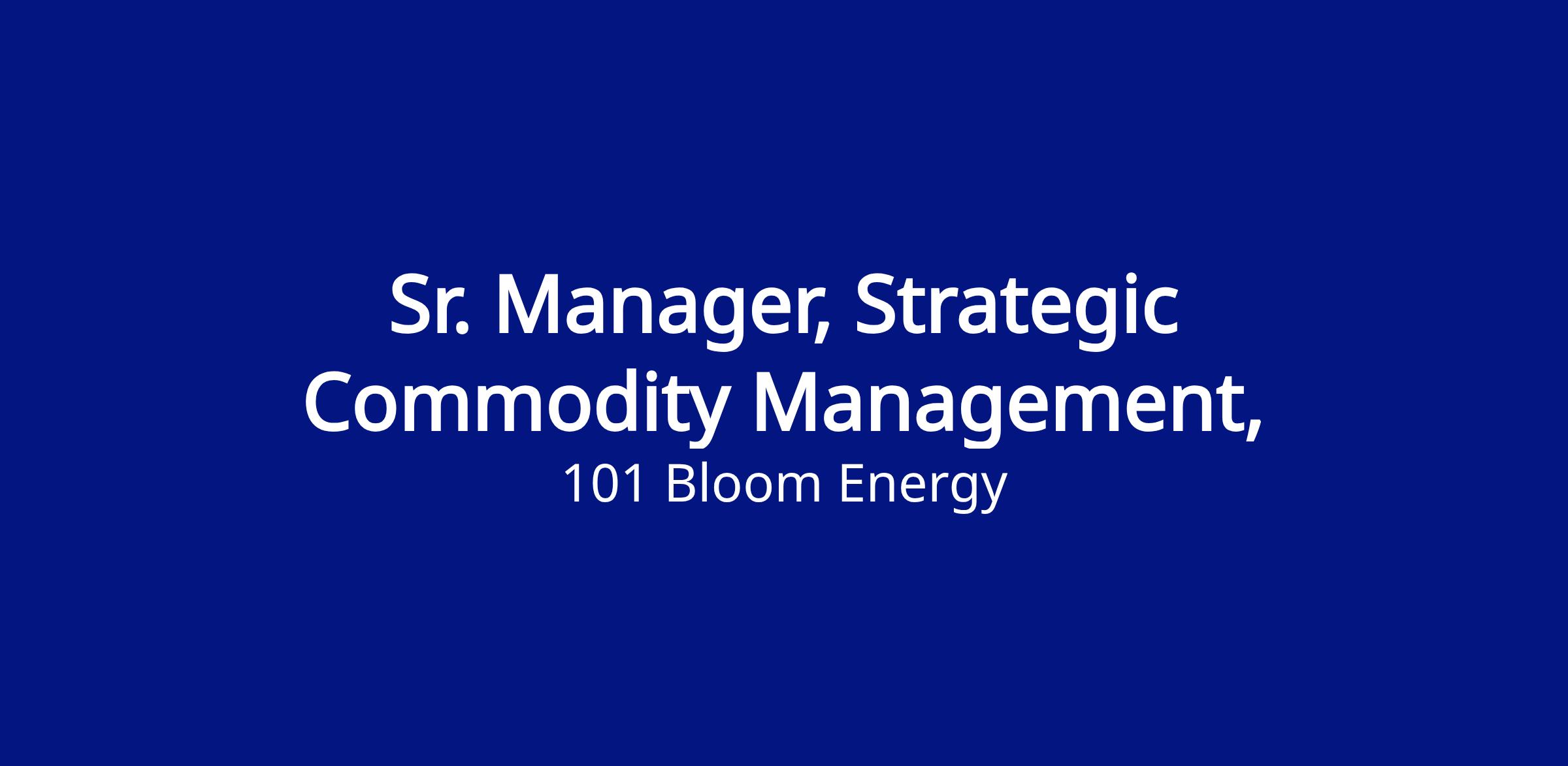 We are looking for a Sr. Manager, Strategic Commodity Management to join our team in one of today’s most exciting technologies. This role will report to the Director of Supply Chain and will be based in San Jose, CA. This is a fully on-site, in office role 5 days a week.