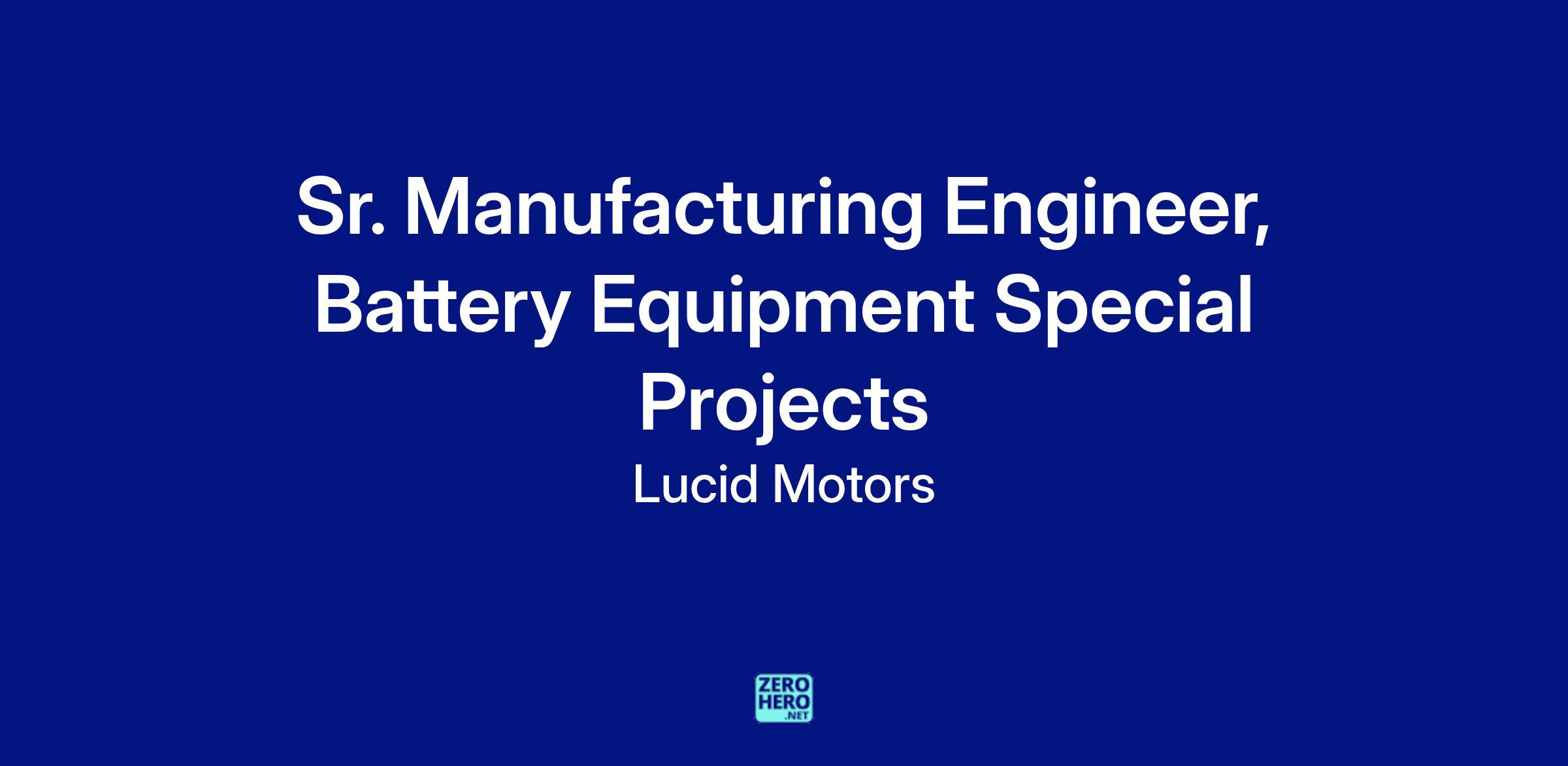 Lucid Motors is seeking a Senior Manufacturing Engineer, PWT Battery Special Projects to join us at Amp-1 in Casa Grande, AZ. Our opportunity will involve leading equipment procurement, installation and validation of new high-volume battery manufacturing lines in collaboration with systems integrators. You will hold special project lead status for critical-timing battery project execution.