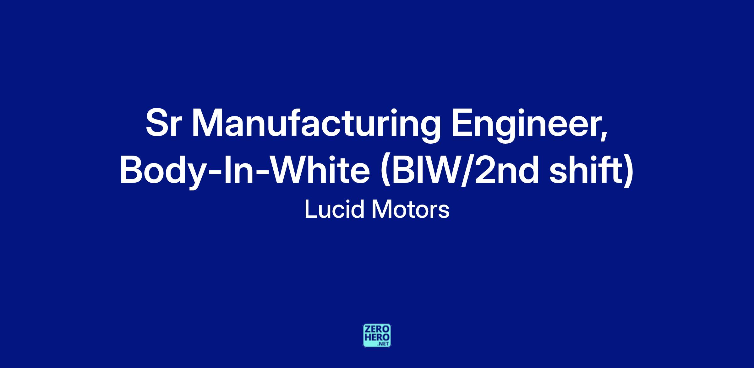 The Sr. Body in White (BIW) Manufacturing Engineer will be responsible for taking the manufacturing lead role in the second shift at BIW Lucid. The Sr. Body in White Manufacturing Engineer will work closely with Manufacturing Operations, Maintenance, Product Engineering, Supplier Quality Engineer, New Product Introduction and other cross-functional teams to ensure Body in White processes are in efficiently in place.