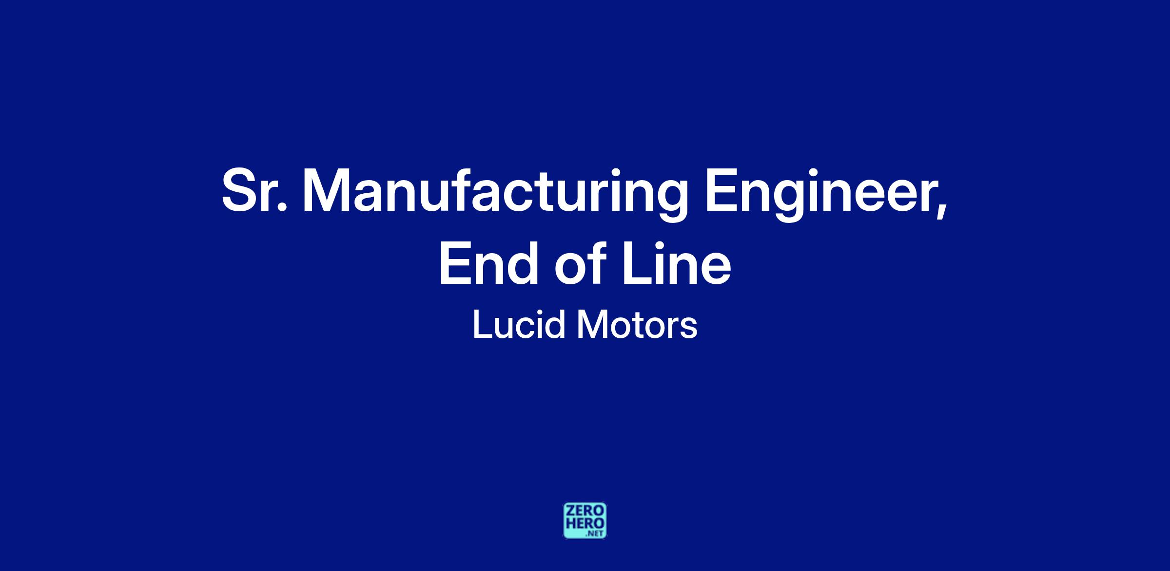 We are currently seeking a Sr. Manufacturing Engineer for the End of Line, Manufacturing Engineering team. The Sr. Manufacturing Engineer will be responsible for taking the lead role in managing all the electrical testing at Lucid. The Sr. Manufacturing Engineer will work closely with Logistics, Manufacturing Operations, Manufacturing Engineers, Product Engineering, New Product Introduction, and other cross-functional teams to ensure the General Assembly process is properly designed and implemented. Our ideal candidate exhibits a can-do attitude and approaches his or her work with vigor and determination. Candidates will be expected to demonstrate excellence in their respective fields, to possess the ability to learn quickly and to strive for perfection within a fast-paced environment.