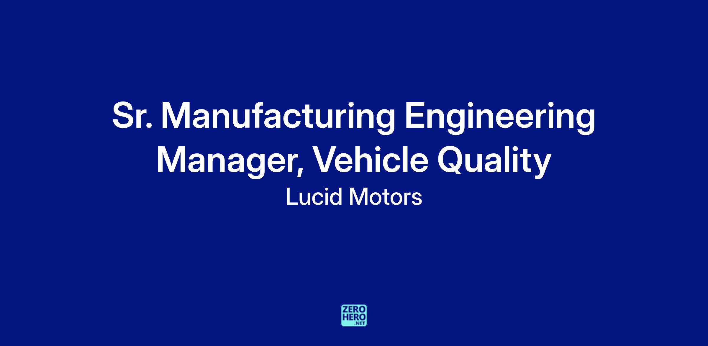 We are seeking a Senior Manager of Vehicle Quality to lead the end-to-end development, integration, and confirmation of the entire vehicle function and craftsmanship for Lucid manufacturing operations; Stamping, BIW, and General Assembly. This leader will drive design requirements for Manufacturing to deliver world-class fit, form and function, beginning at design through the industrialization phase.