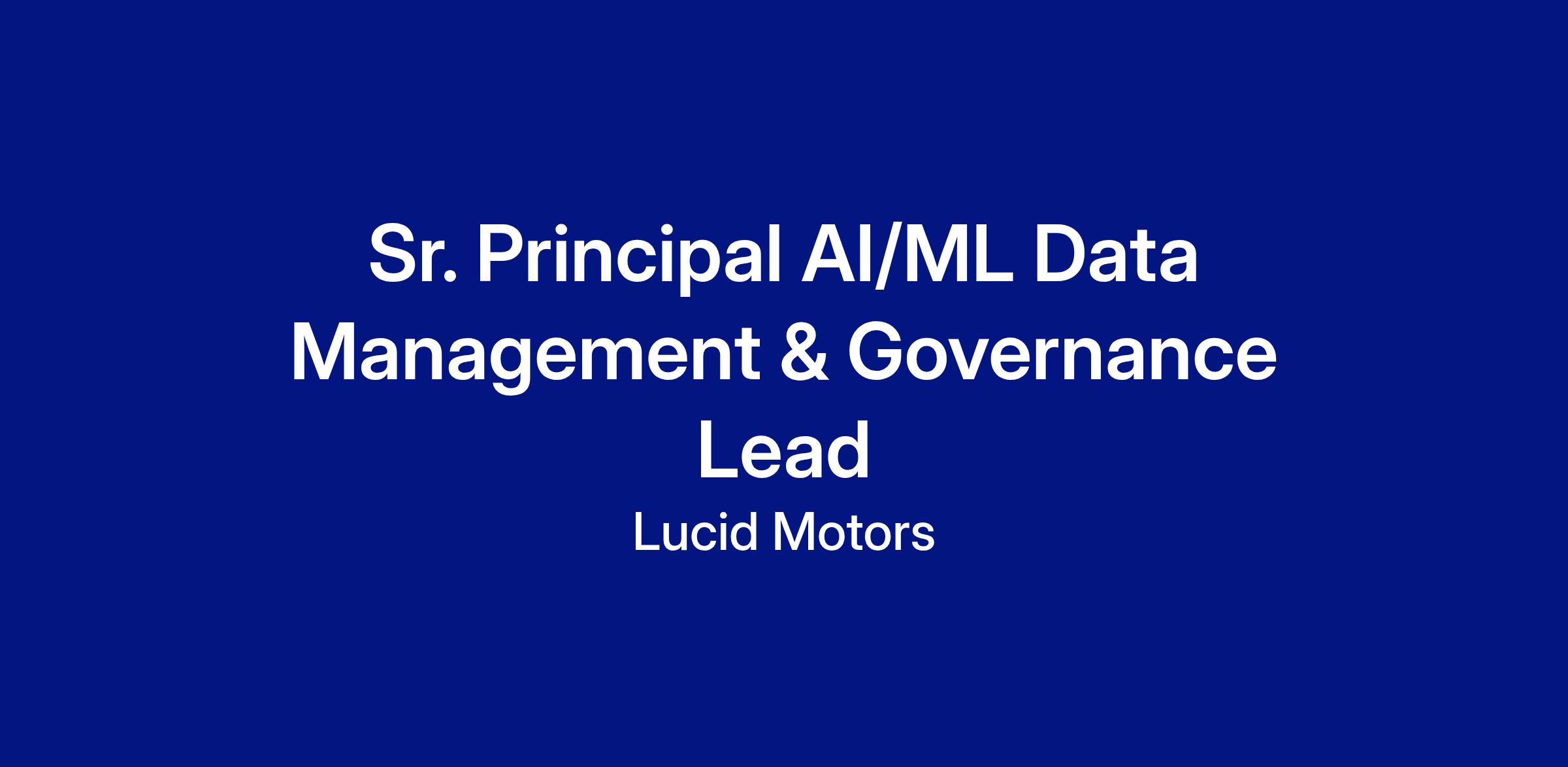 Data generated by electric vehicles, manufacturing operations, and enterprise systems is rich and diverse with increasing potential to design, develop, and deploy AI/ML solutions at scale. Lucid’s AI organization is leading the innovation and in-vehicle AI product solutions and is seeking a Lucid’s AI/ML organization is seeking a Sr. Principal AI/ML Data Management & Governance Lead. This position will strategize, execute, and maintain master data management and data readiness for Lucid’s AI operational solutions and product enablement. You will architect and build the automated "control plane" that ensures our Data, AI, and Autonomous Agents operate in a safe, well-governed manner. This role bridges the gap between policy and code.