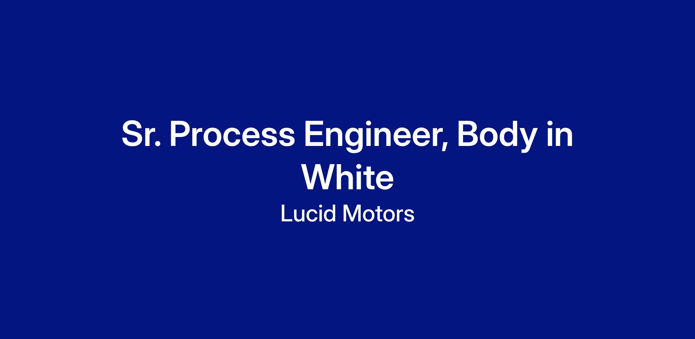 We are seeking an experienced and detail-oriented Senior Process Engineer highly skilled and experienced in Body-in-White (BIW) process to lead the development, optimization and implementation of processes. The ideal candidate will bring deep technical expertise in welding, joining technologies, automation and manufacturing systems to ensure production efficiency, high quality and safety in BIW. The successful candidate will drive process capability, ensure product integrity, and support the achievement of shop KPIs.