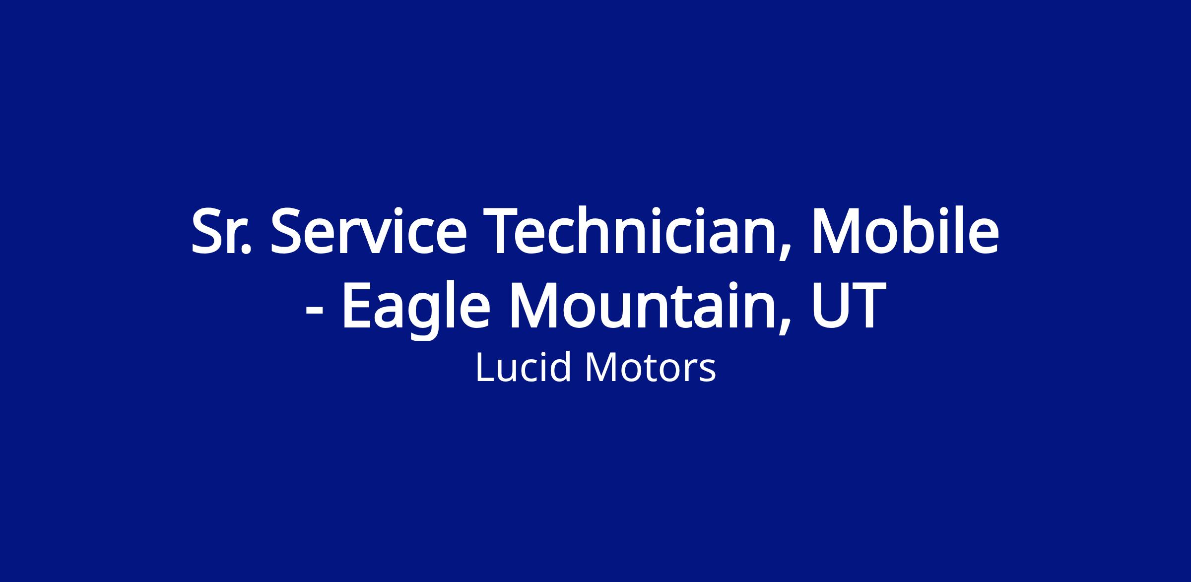 Sr. Service Technician, Mobile - Eagle Mountain, UT