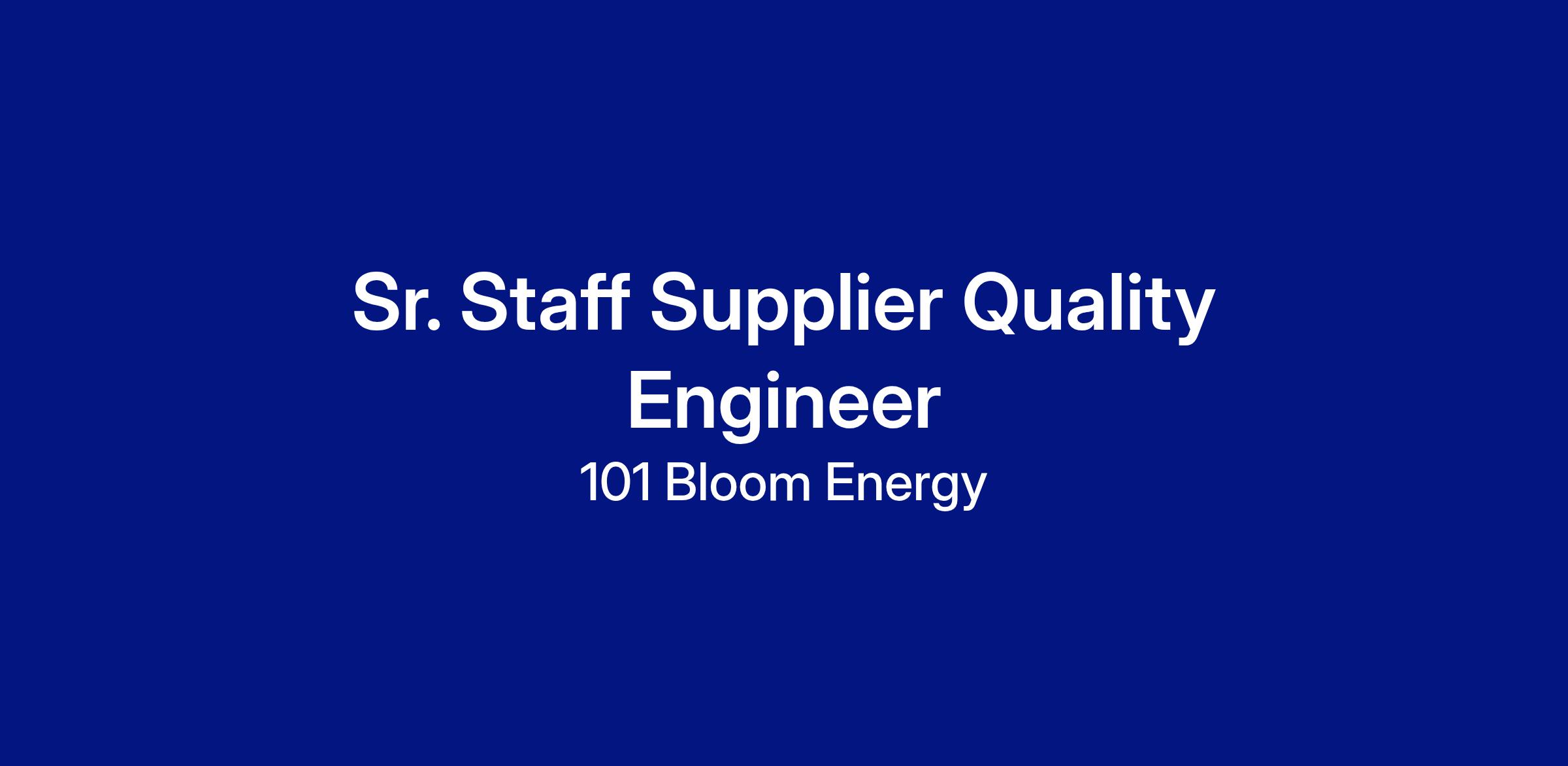 As a Sr. Staff Supplier Quality Engineer, you will be a part of the team responsible for setting and delivering the quality and reliability standards for our fuel cell components across Bloom Energy; you will work closely with supply chain and engineering as part of a cross functional team. We are looking for a Quality expert with a proven demonstrated track record of improving the quality from Design maintaining it throughout its full life cycle. We are looking for someone who is hands-on, can manage both long term trends and projects, and have extensive involvement in the tools and techniques used to assess and deliver product quality and reliability. The ideal candidate will be entrepreneurial, driven, energetic, detailed, team oriented and patient with data who delivers proven timely results. Comfortable in a dynamic environment with constant change / iteration of products / services.