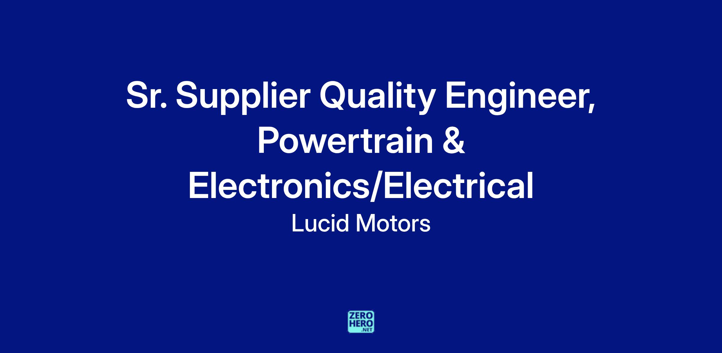 Lucid Motors is seeking a Senior Supplier Quality Engineer to support our Powertrain and Electrical/Electronics commodities. This Level 8 role is responsible for leading supplier quality across the full lifecycle—from early design through mass production—ensuring robust manufacturing processes, effective quality controls, and continuous improvement.