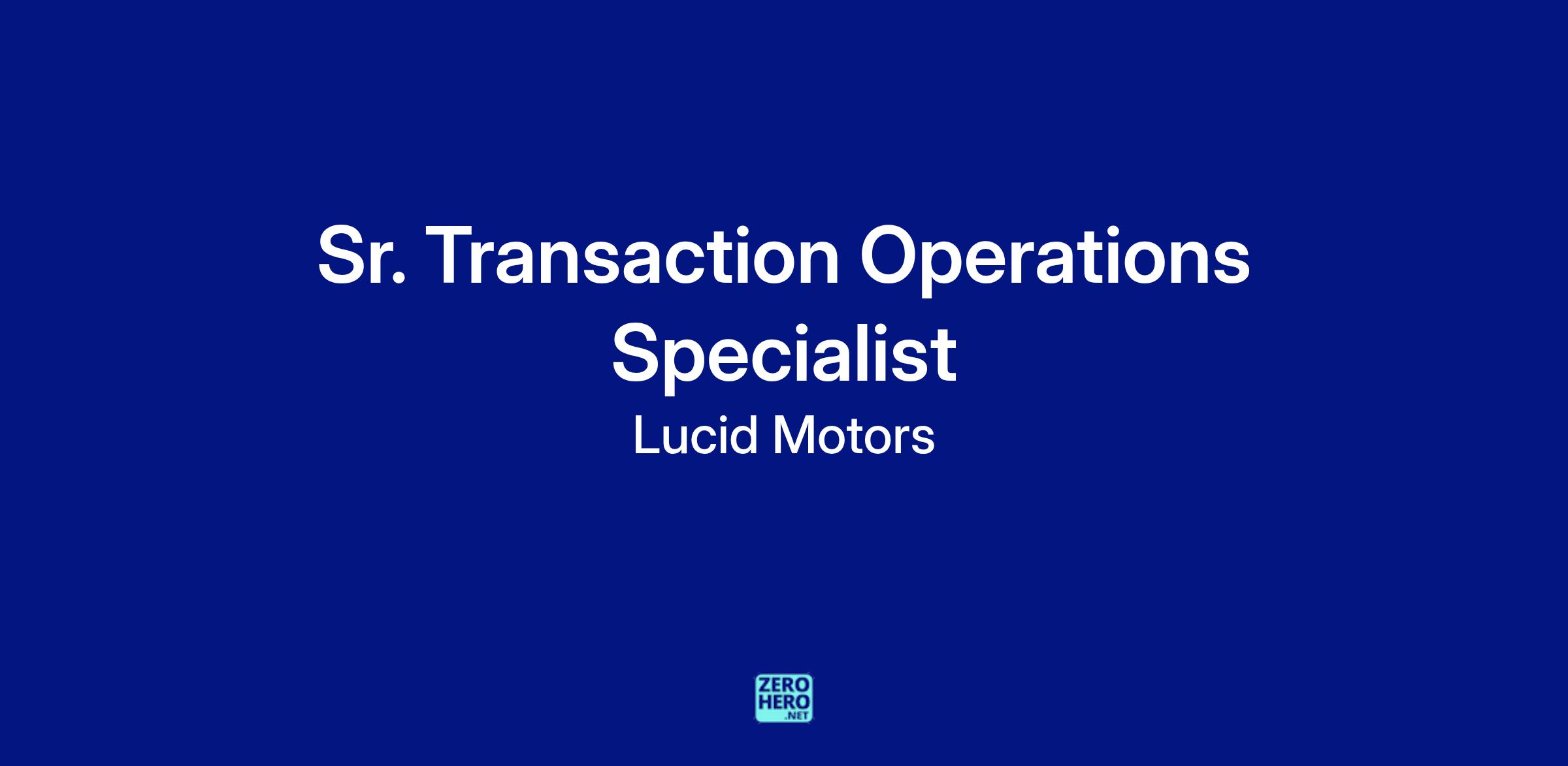 We are currently seeking a Sr. Transaction Operations Specialist for Lucid. This person will be responsible for ensuring that Lucid can support Inside Sales and customer-facing field Sales teams from the reservation process through deliveries to the customers and acting as an extension of the DMV Operations team located in Torrance.