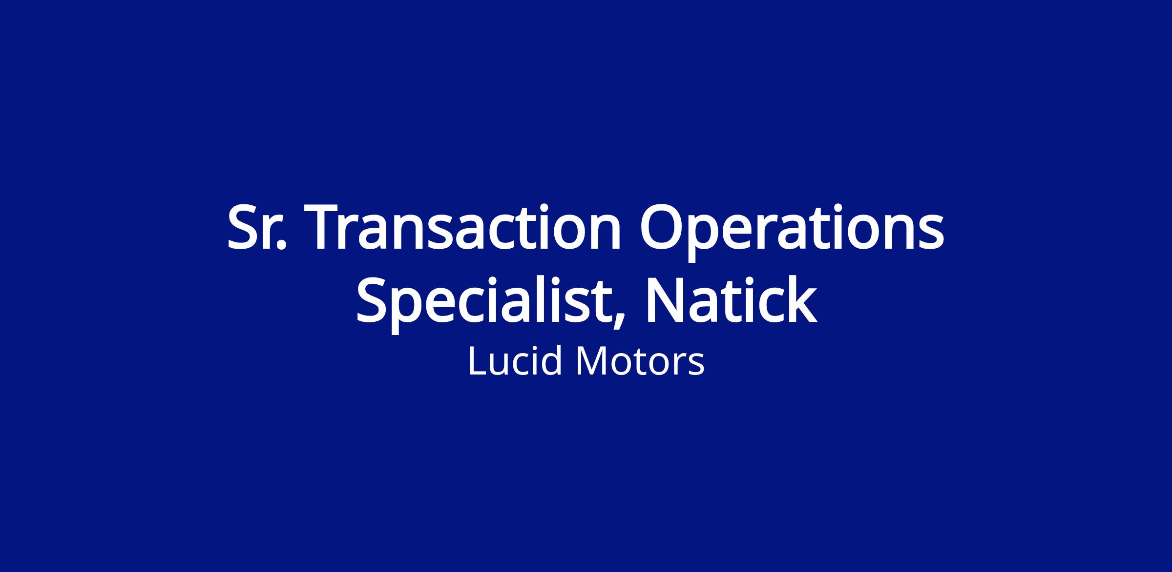 We are currently seeking a Sr. Transaction Operations Specialist for Lucid. This person will be responsible for ensuring that Lucid can support Inside Sales and customer-facing field Sales teams from the reservation process through deliveries to the customers and acting as an extension of the DMV Operations team at our Natick facility.