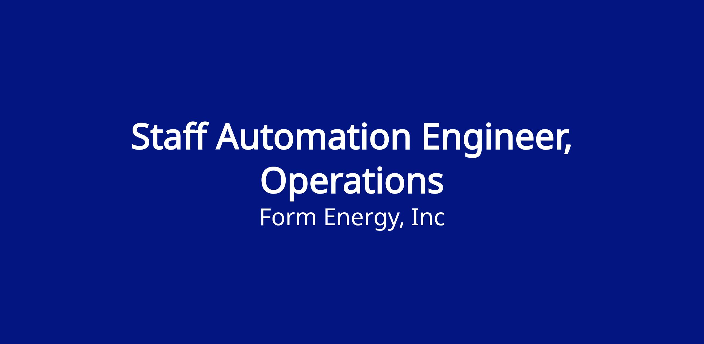 We’re hiring a Staff Automation Engineer within our growing Operations Engineering team. In this role, you will serve as a primary technical architect for the automated systems and equipment strategies required to ramp production of our iron air battery. You will own the operation of complex robotic cells and automated hardware, driving technical decisions that eliminate manufacturing bottlenecks and ensure long-term equipment reliability. By continuously improving standards for automation and precision control, you will ensure our production environment delivers a high volume of top quality products. Your leadership will be the cornerstone in transforming advanced battery technology into a world-class, automated manufacturing reality that secures global energy reliability.