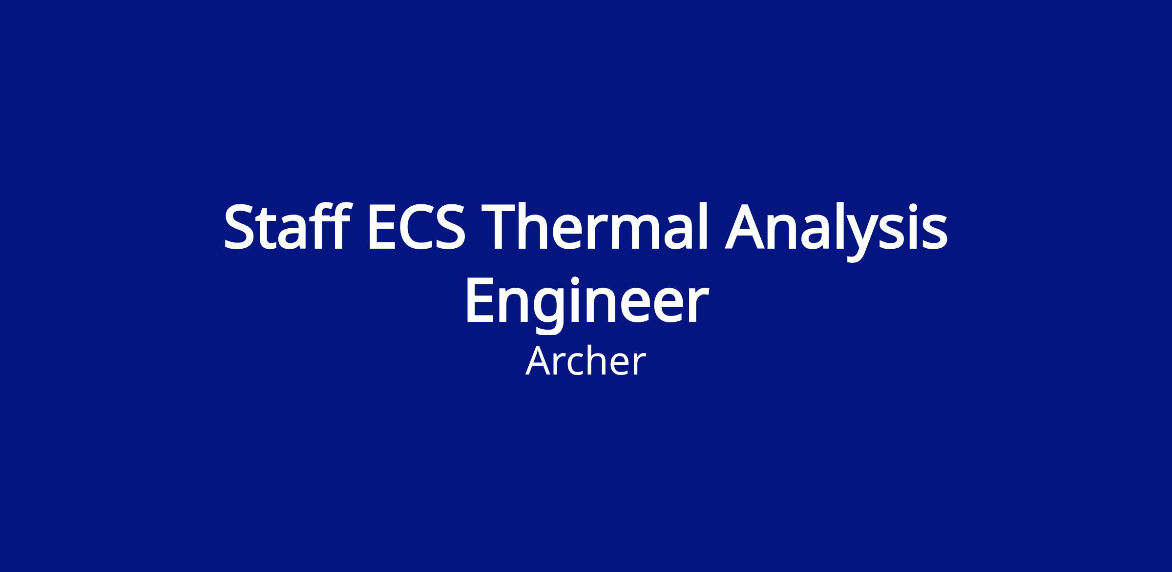 We are seeking a Staff ECS Thermal and Flow Analysis Engineer to join our Thermal Management team. This hands-on role will primarily focus on the design, analysis, and optimization of the Environmental Control System (ECS) and the overall fuselage ensuring cabin comfort, avionics cooling, and safe operation across all flight conditions. You will work closely with the ECS team, system architects, and test engineers to develop system-level and component-level flow and thermal models that inform design decisions and support verification, validation, and certification activities.