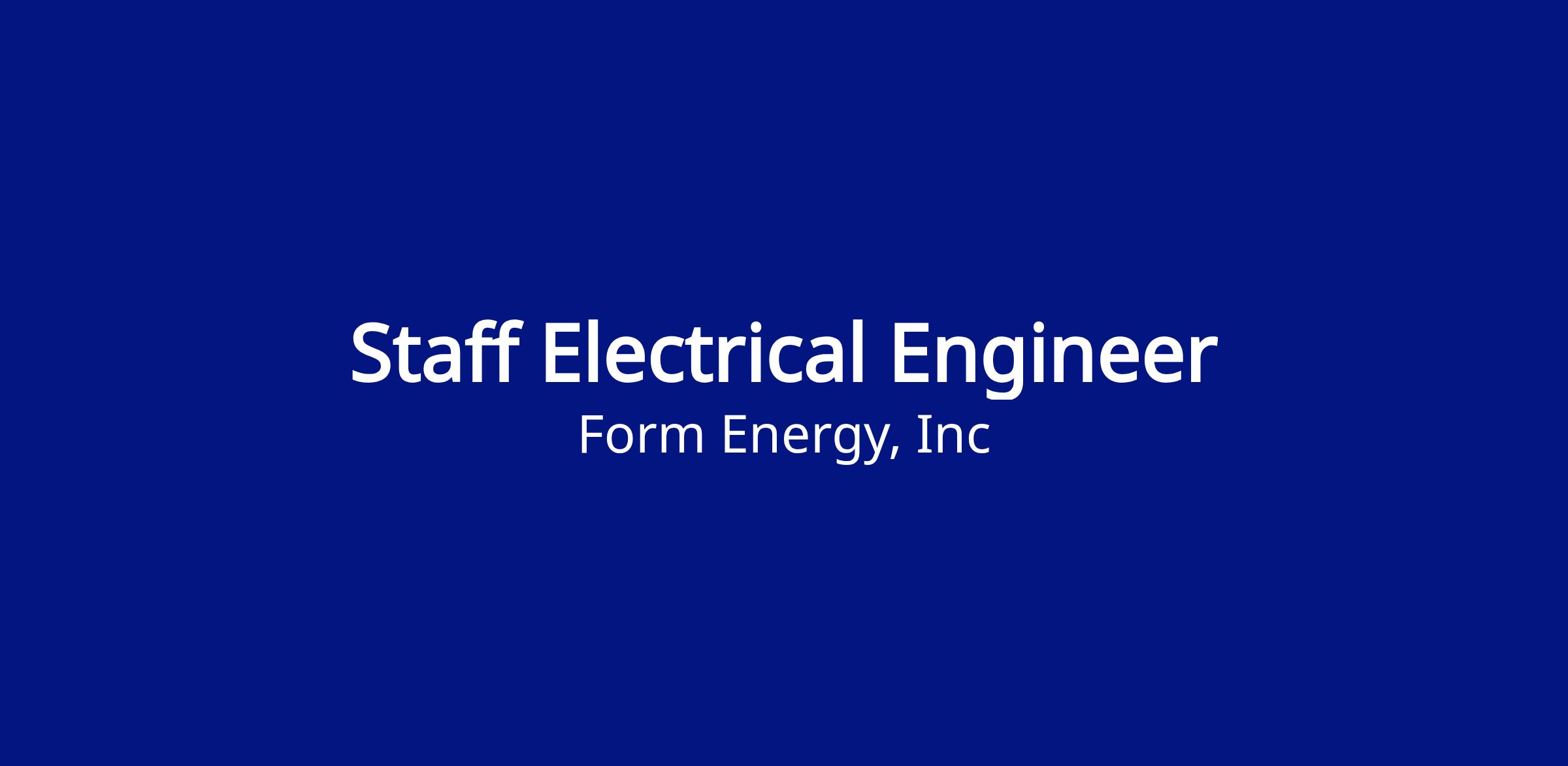 Form Energy is hiring a Staff Electrical Engineer who will play a critical role in ensuring the electrical infrastructure of our manufacturing facilities meets the highest standards of efficiency, reliability, and safety. This position requires developing in-depth expertise of manufacturing systems and overseeing all electrical requirements through close collaboration with our manufacturing engineers and equipment vendors. The successful candidate will lead up the electrical engineering discipline, managing both internal teams and external consultants to deliver comprehensive electrical solutions. This person will also work closely with our facilities team and act as an informal system owner for the site.