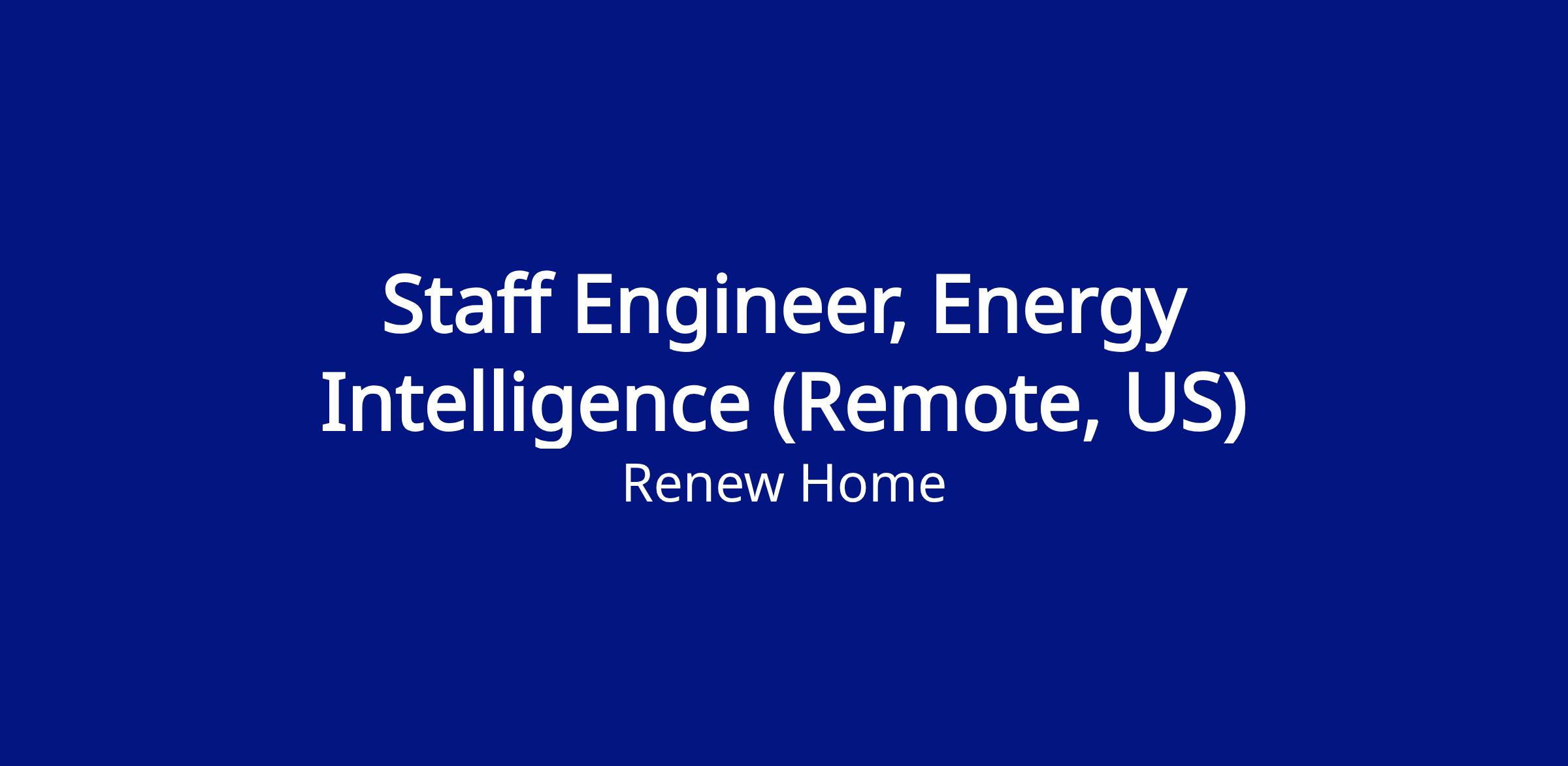 Renew Home is seeking a talented and self-driven Staff Software Engineer to join the growing Energy Intelligence team. The Energy Intelligence team at Renew Home is responsible for the home energy optimization feature set which is at the heart of the value Renew Home provides. You’ll take significant ownership of end-to-end algorithm development—from discovery to deployment—contributing directly to the value we provide the grid and to company performance. This includes tackling challenges like co-optimizing thermostats, home batteries, and electric vehicles - taking into account user needs, physical system dynamics, and grid demand.