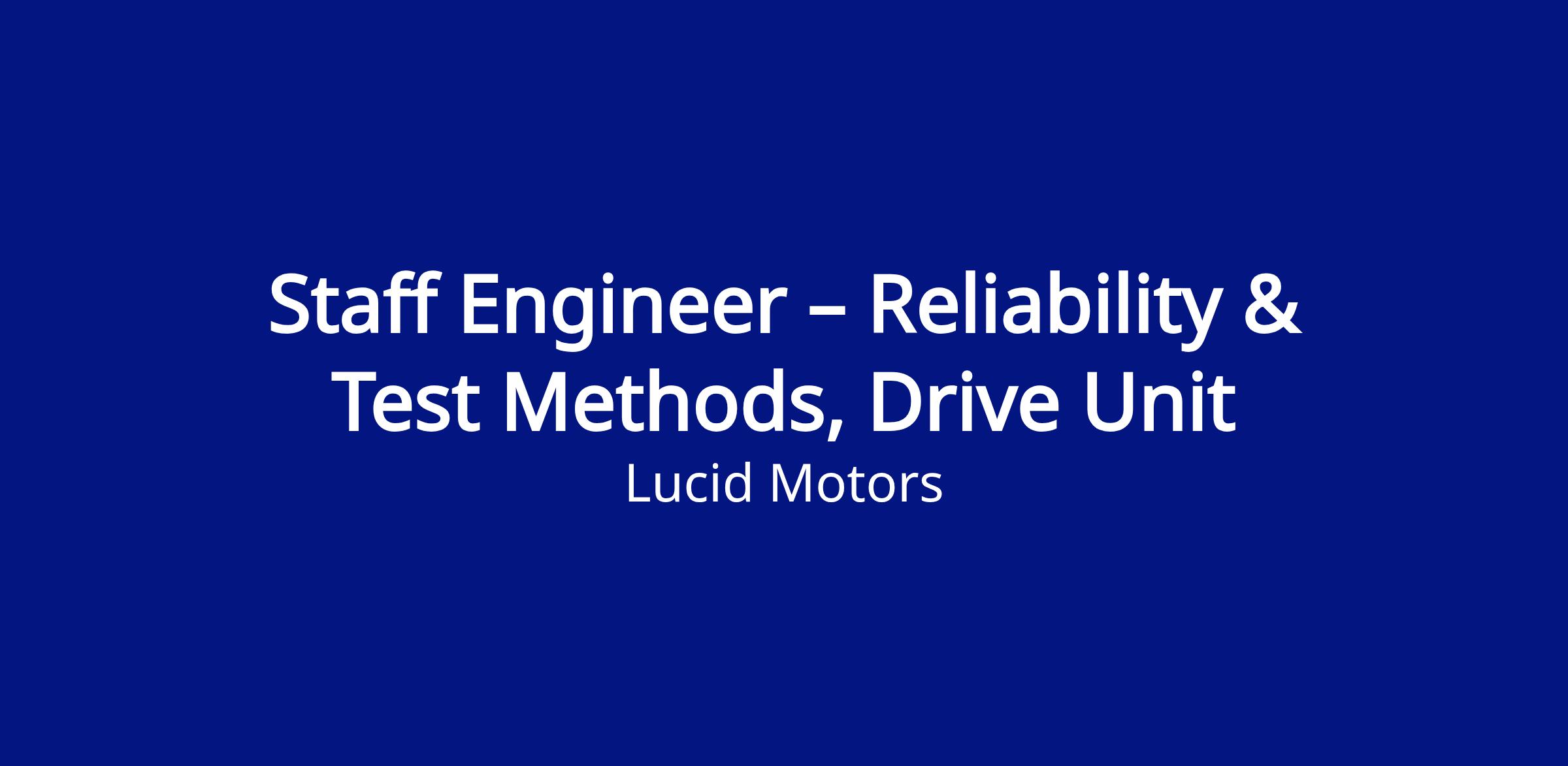 Lucid Motors is seeking a Staff Engineer – Reliability & Test Methods to provide technical leadership and system‑level ownership for reliability engineering of motor gearboxes, inverters and drive units. This role is critical to ensuring durability, functional safety, and field reliability across current production and future vehicle programs.