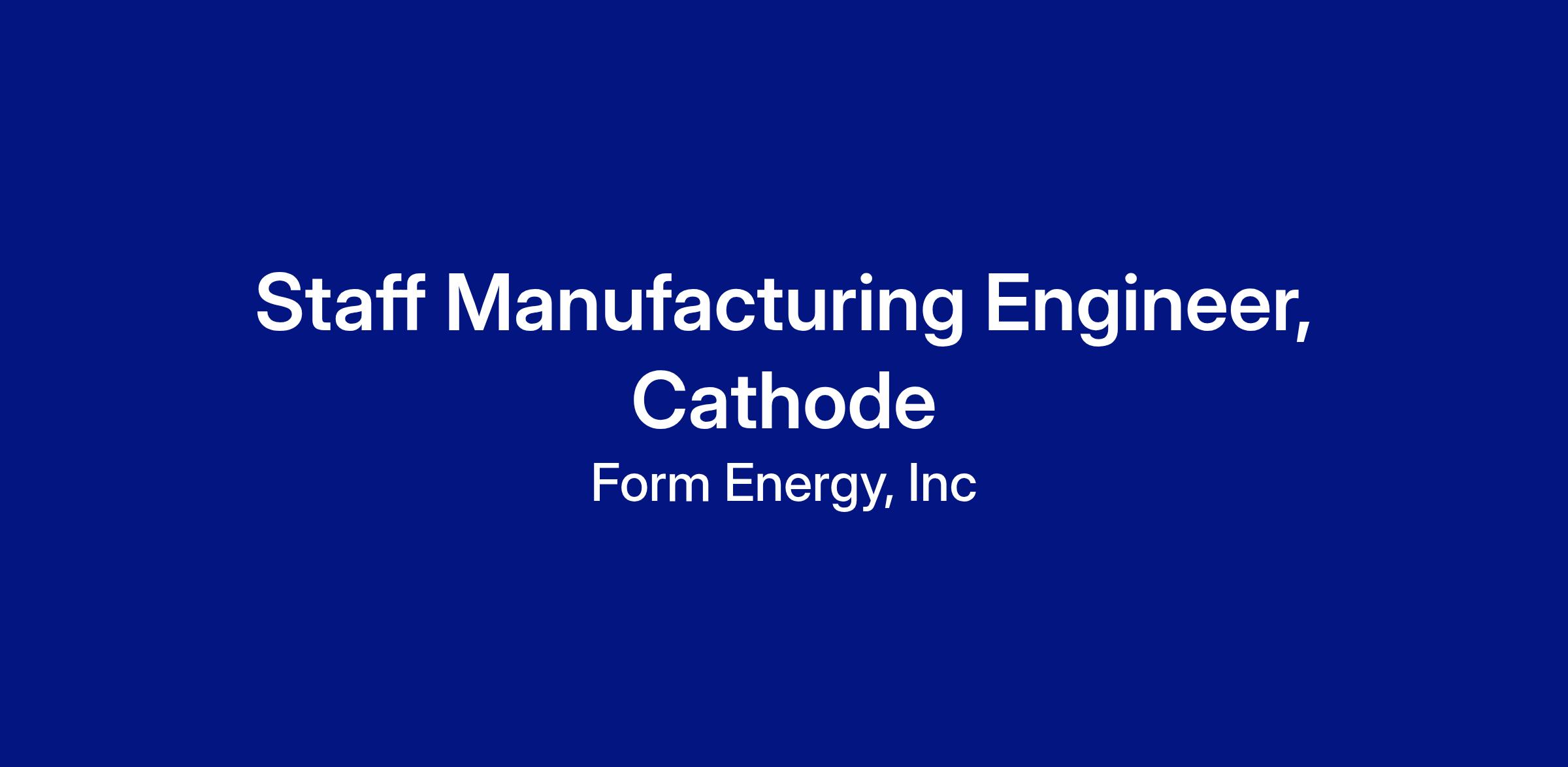Form Energy is hiring a Staff Manufacturing Engineer to join our world-class engineering team. Our team is responsible for developing and scaling the automation systems that enable efficient, reliable, and high-quality manufacturing of Form Energy’s Iron-Air multi-day battery.