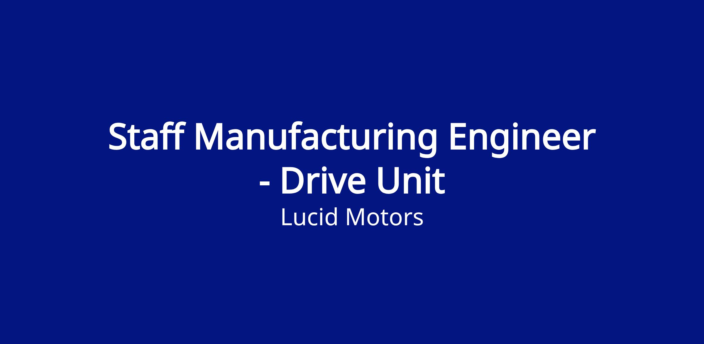 As a Staff Manufacturing Engineer - Drive Unit (DU), Advanced Manufacturing Engineering, Powertrain, you will take a technical leadership role in the design, development, and deployment of manufacturing processes and equipment for Drive Unit production at Lucid. This role is responsible for ensuring Drive Unit manufacturing systems are robust, scalable, and capable of meeting performance, quality, and throughput requirements for high‑volume production.