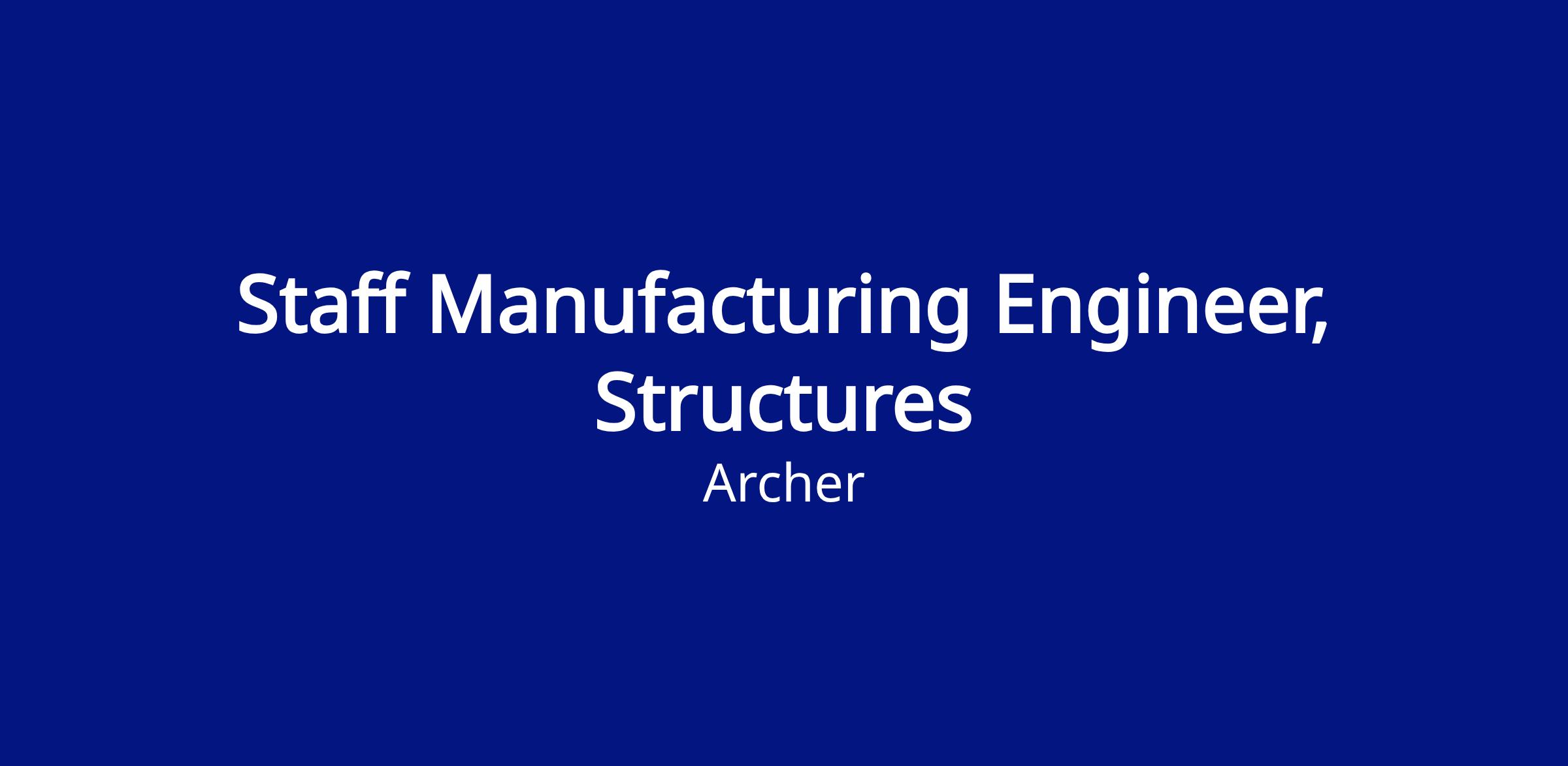 In this role, you will drive the manufacturing strategy for aircraft structures and serve as a technical leader responsible for defining and scaling Archer's aircraft design and production, supporting aircraft builds from prototype through early production ramp.