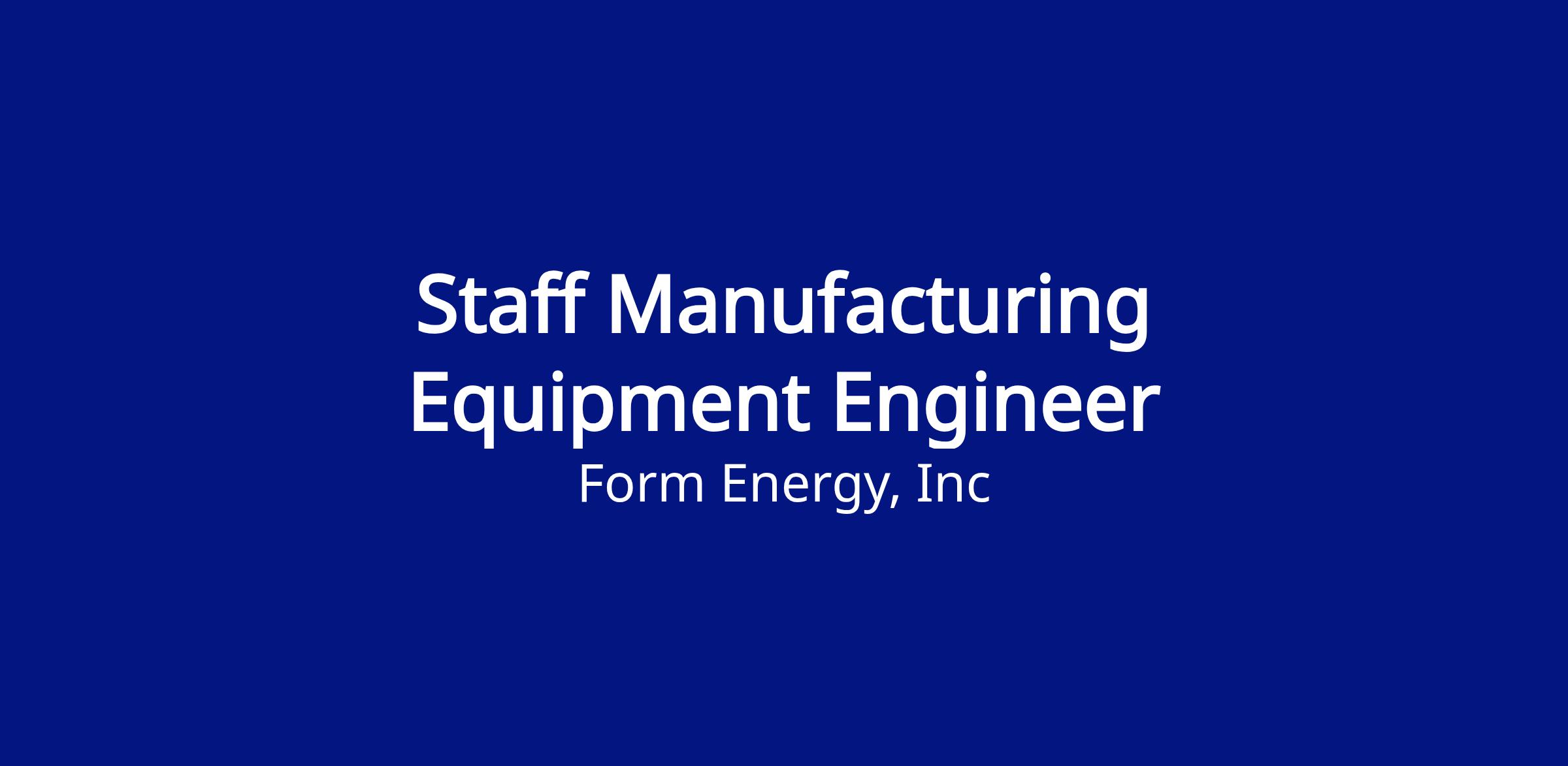We’re looking for a Staff Equipment Engineer to join our growing Manufacturing Operations team. We are dedicated to developing and deploying cutting-edge automated equipment to enable the high-volume production of Form Energy’s revolutionary energy storage solutions.