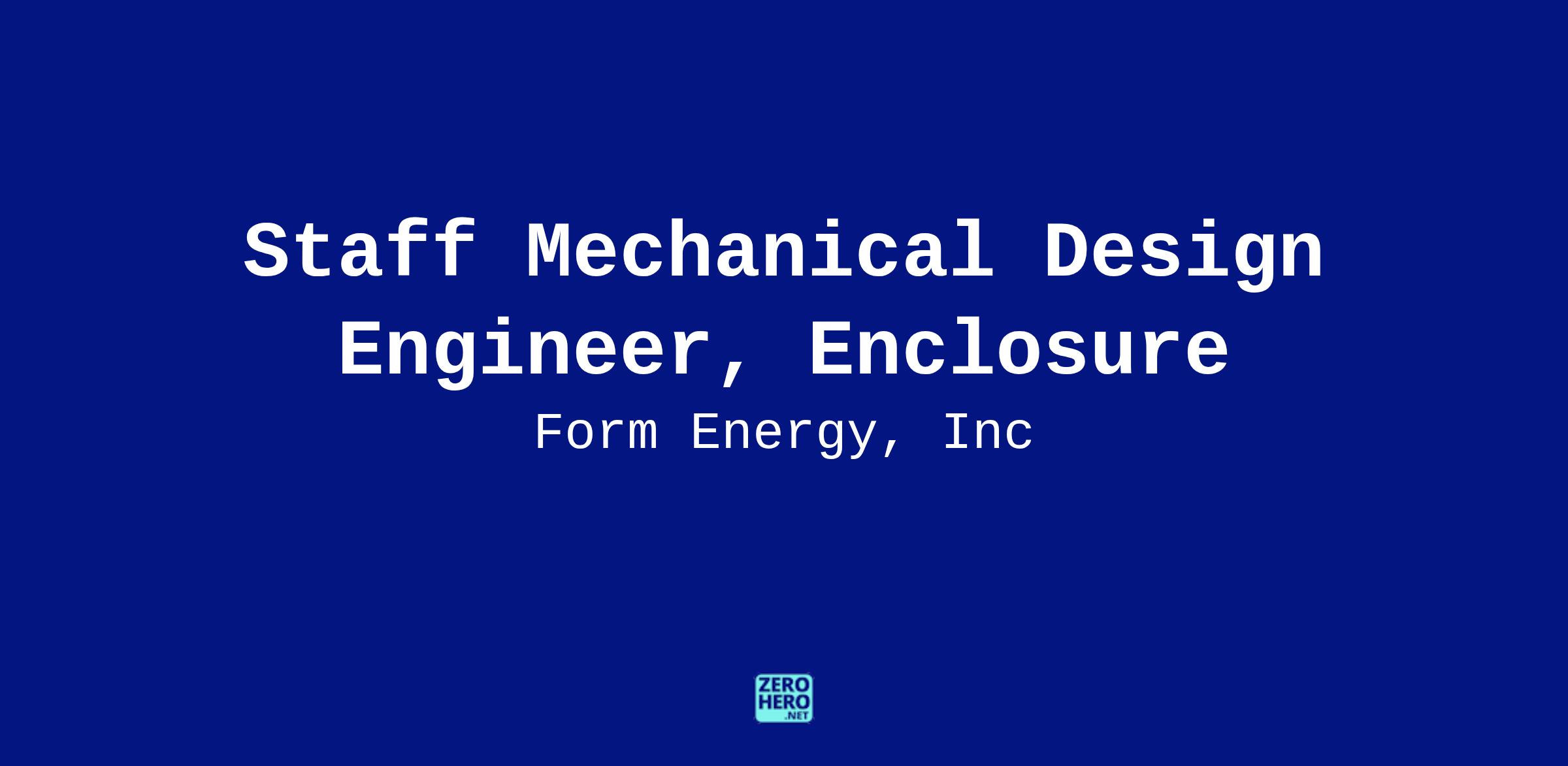 We're seeking a Staff Mechanical Design Engineer to join our team and lead design efforts for crucial parts of our iron-air battery integrated structures. You'll bring components and assemblies from concept to into mass production, with a strong emphasis on structural design, weatherproofing, and manufacturability of metal enclosures. As a problem solver, you'll creatively tackle mechanical design challenges and apply your design knowledge of sheet metal, weldments, plastics, and sealing systems for mass production. You'll work cross-functionally with teams on requirements definition, verification plans, and failure analysis to deliver a design that meets those requirements. Troubleshooting design problems as they arise and working to implement improvements will also be a part of your responsibilities. This is an exciting opportunity to be part of scaling our multi-day energy storage system at Form and contributing to a sustainable future. If this sounds like the perfect opportunity for you, apply now!