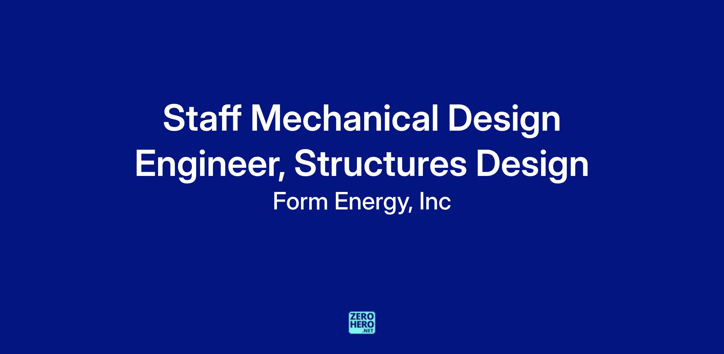 We're seeking a Staff Mechanical Design Engineer to join our team and lead design efforts for crucial parts of our iron-air battery integrated structures. You'll bring components and assemblies from concept to into mass production, with a strong emphasis on structural design, weatherproofing, and manufacturability of metal enclosures. As a problem solver, you'll creatively tackle mechanical design challenges and apply your design knowledge of sheet metal, weldments, plastics, and sealing systems for mass production. You'll work cross-functionally with teams on requirements definition, verification plans, and failure analysis to deliver a design that meets those requirements. Troubleshooting design problems as they arise and working to implement improvements will also be a part of your responsibilities. This is an exciting opportunity to be part of scaling our multi-day energy storage system at Form and contributing to a sustainable future. If this sounds like the perfect opportunity for you, apply now!
