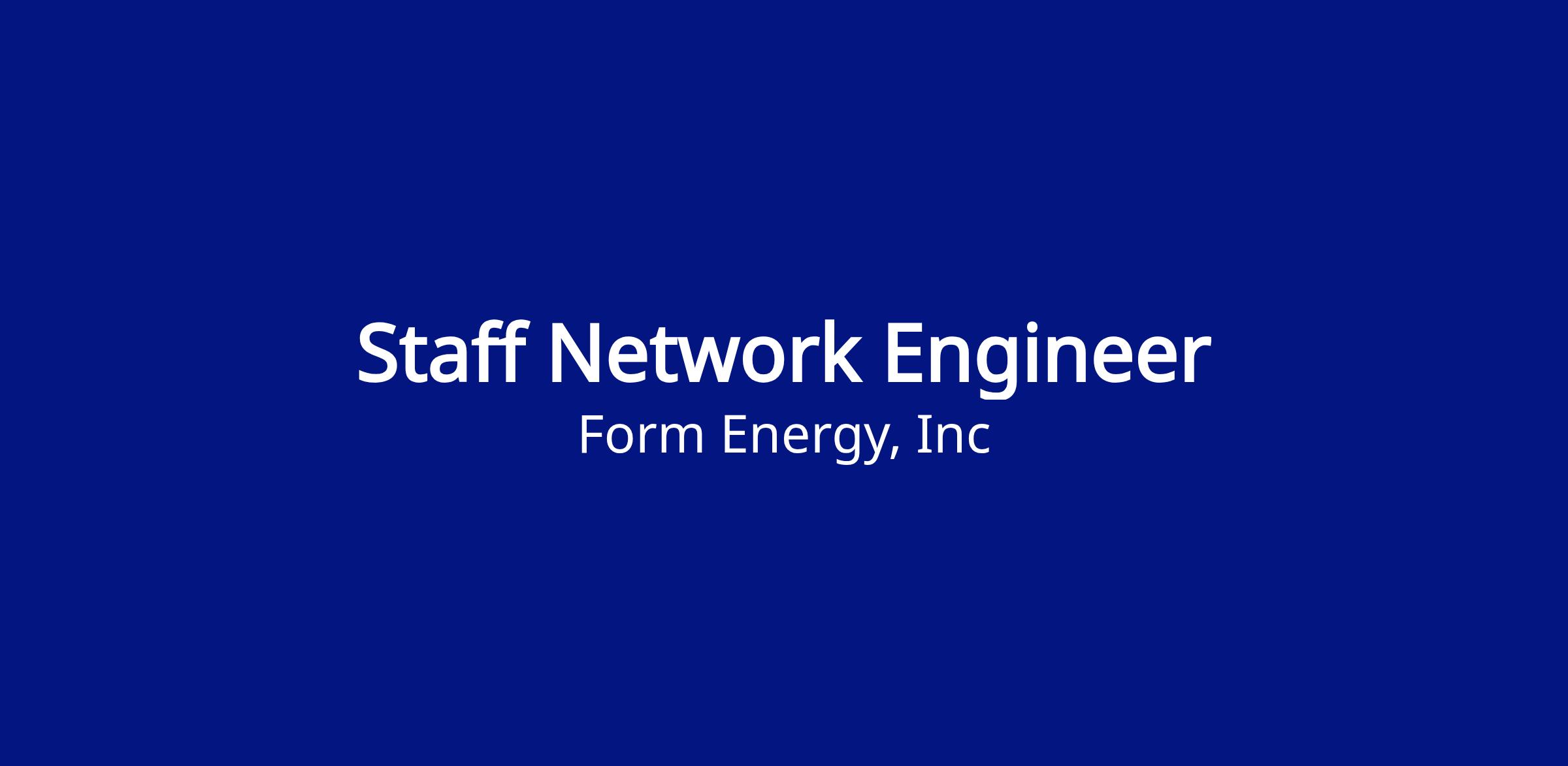 Form Energy is hiring a Staff Network Engineer. The Staff Network Engineer – will be a technical leader responsible for the architecture, design, and reliability of Form Energy’s hybrid enterprise and industrial network environments. This role will focus on securely integrating IT and OT systems while maintaining the high availability, safety, and performance required for manufacturing and operational environments.
