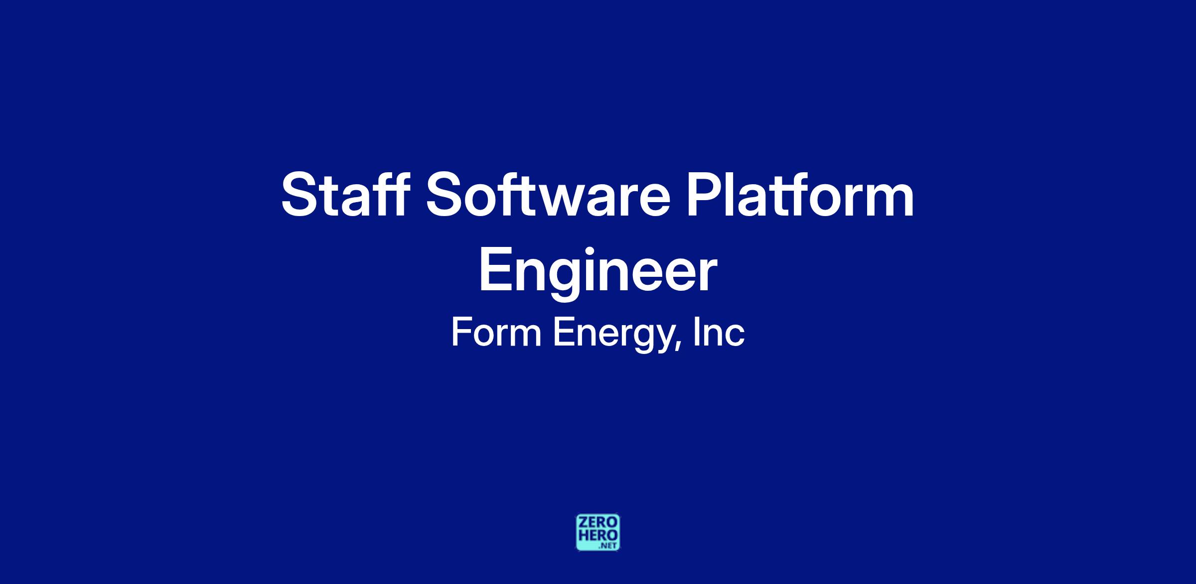 Form Energy is hiring a Staff Software Platform Engineer to be part of our growing Software Engineering organization. This organization is responsible for everything up and down our technology software stack, and is at the heart of making sure Form’s battery achieves the best performance possible. This is an exciting opportunity to help shape, and be part of a fast moving company, working on breakthrough technology, and an incredible mission.