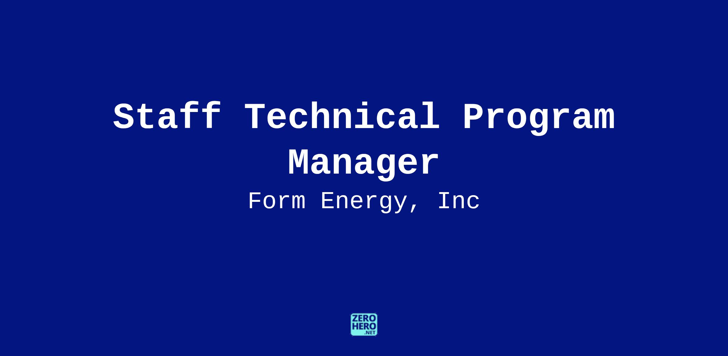 Form Energy is hiring a Staff Engineering Program Manager to take on a pivotal role in developing the strategy and driving execution of our first in-kind battery development and manufacturing programs. As part of the TPM (Technical Program Management) team, you will bring the cross functional teams together and execute on the plan to transition the product from development to prototype then commercial manufacturing. You will partner with multiple Design and Engineering teams well as other program managers across Form Energy. This is an exciting opportunity to help shape and be part of the growth of a fast-moving company with breakthrough technology and an incredible mission!