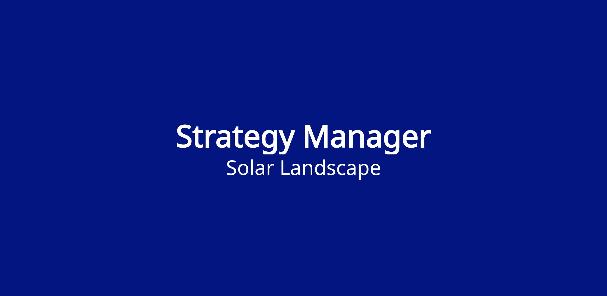 \nStrategic Initiatives: Lead initiatives that improve Solar Landscape’s pipeline management and execution, including defining scalable approaches for managing early-stage project execution across both existing and new markets.
