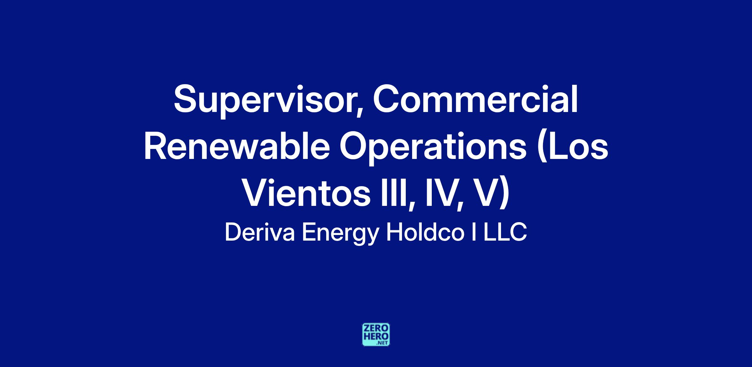 The Supervisor Commercial Renewable Operations is responsible for delivering profitable results at a Deriva owned wind site located in assigned area. Achieve profitable results through safe, efficient, environmentally sound operations that are consistent with both Deriva policy and industry best practices. Responsible for the safety (human and environmental) and final work product of all persons who are on the site including but not limited to permanent and temporarily assigned Deriva staff as well as contractors, suppliers and vendors. Responsible for maintaining a positive, transparent, collaborative working relationship with other corporate support functions. Responsible for maintaining a positive, contractually sound relationship with all landowners and power off-takers weβve partnered with at the asset, while maintaining a positive presence in the broader community where we live and work. Expected to troubleshoot, maintain and perform operations in the field and up-tower.