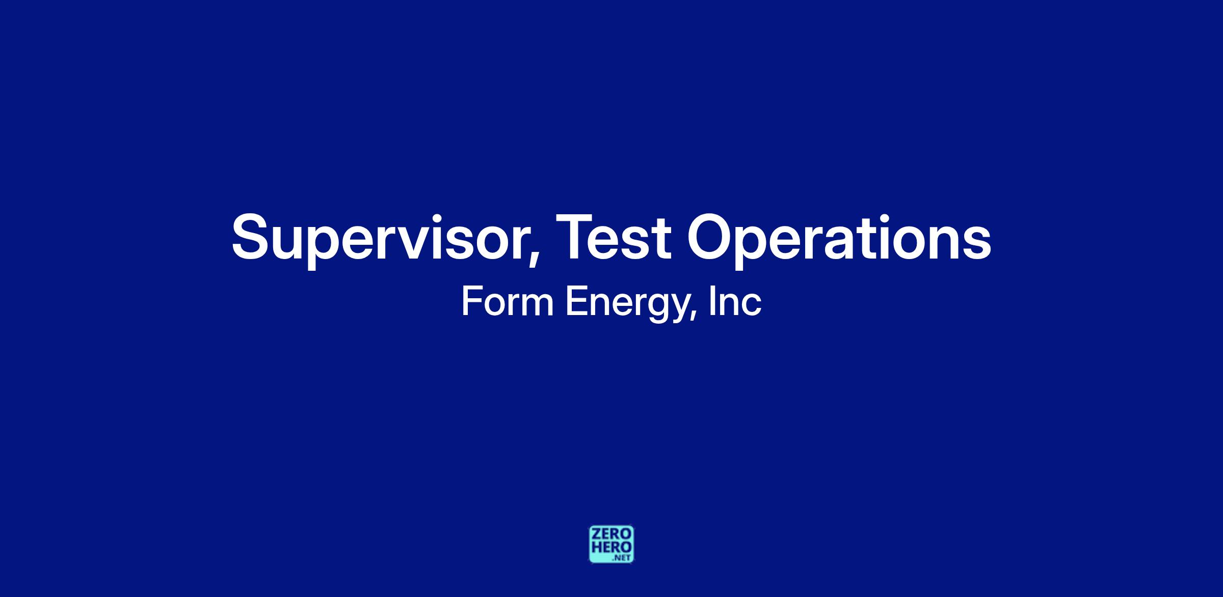 Join our team at Form Energy's factory to lead our testing operations, playing a vital role in ensuring the quality and reliability of our breakthrough iron-air battery technology. You will manage and mentor a team of technicians and associates, driving excellence and creativity in a fast-paced manufacturing environment. As we continue to develop and scale our processes and systems, your ability to provide clear direction amidst ambiguity will be key. This is a chance to have a direct impact on our mission to reshape the global electric system with low-cost, multi-day energy storage.