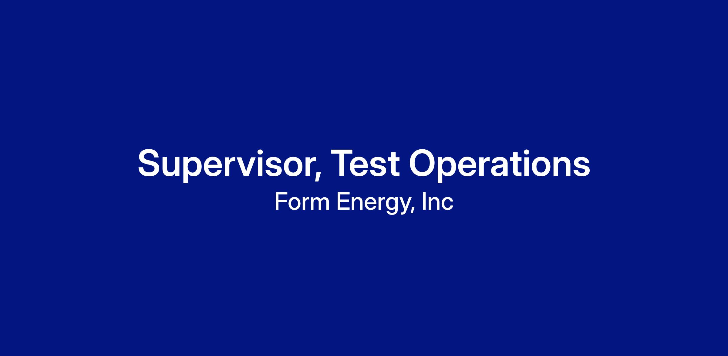 Join our team at Form Energy's factory to lead our testing operations, playing a vital role in ensuring the quality and reliability of our breakthrough iron-air battery technology. You will manage and mentor a team of technicians and associates, driving excellence and creativity in a fast-paced manufacturing environment. As we continue to develop and scale our processes and systems, your ability to provide clear direction amidst ambiguity will be key. This is a chance to have a direct impact on our mission to reshape the global electric system with low-cost, multi-day energy storage.