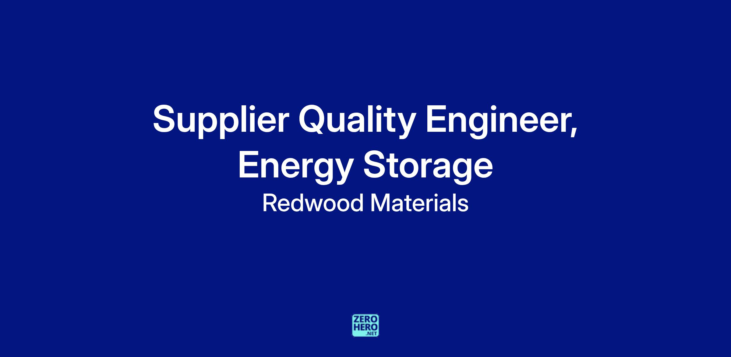 Supplier Quality Engineer, Energy Storage