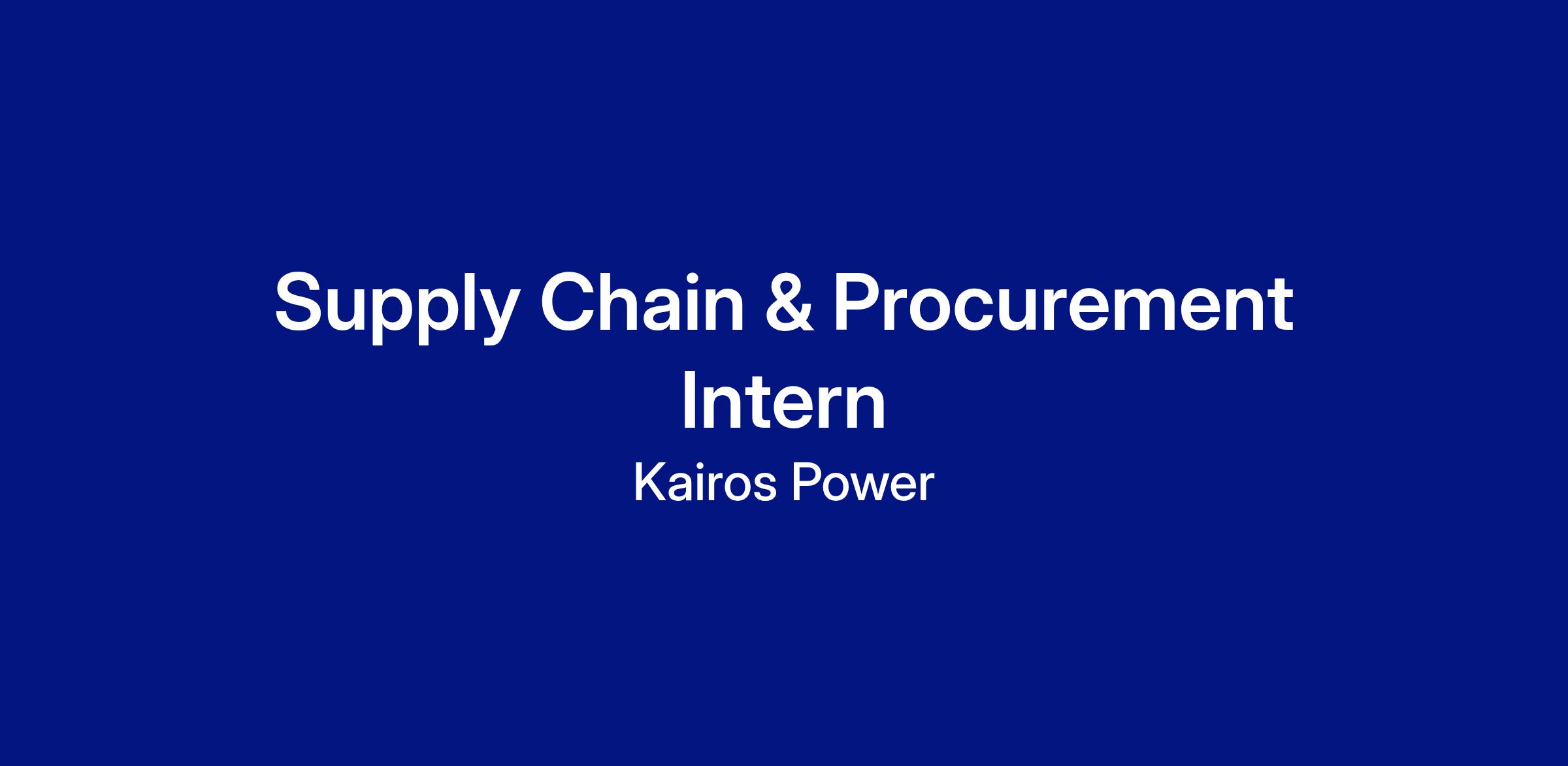 Kairos Power is seeking a motivated and inquisitive Supply Chain and Procurement (SC&P) Intern who will work under the supervision of the Procurement Lead at our Manufacturing Campus in Albuquerque, New Mexico. The SC&P Intern will be responsible for supporting the SC&P team, leveraging the opportunity to gain practical experience in a dynamic procurement department assisting with sourcing, purchase order management, data reporting, order expediting, and supplier relationship management.