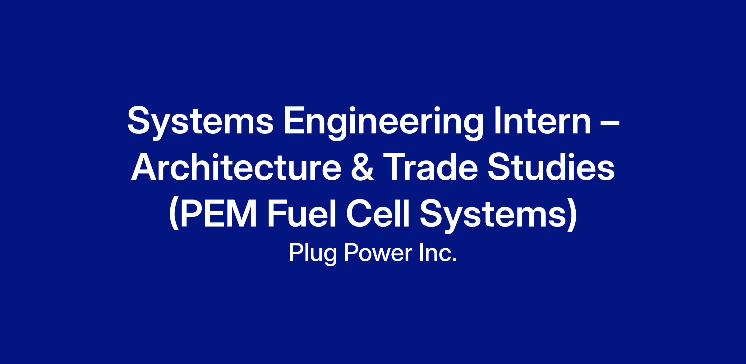 Plug Power Inc. is seeking a highly motivated Systems Engineering Intern to support early- to mid-stage system design activities for PEM fuel cell products during Summer 2026. This role is focused on system architecture development, design studies, and trade-off analysis, aligned with the left-hand side of the systems engineering V-model.