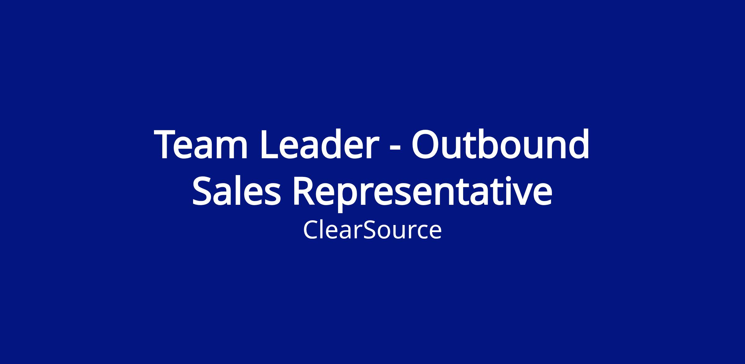 ClearSource is looking for an exceptional Team Leader - Outbound Sales Representative. If you are a sales driven person with prior experience in the same field and want to join a company with a fantastic work culture, then this opportunity is for you.