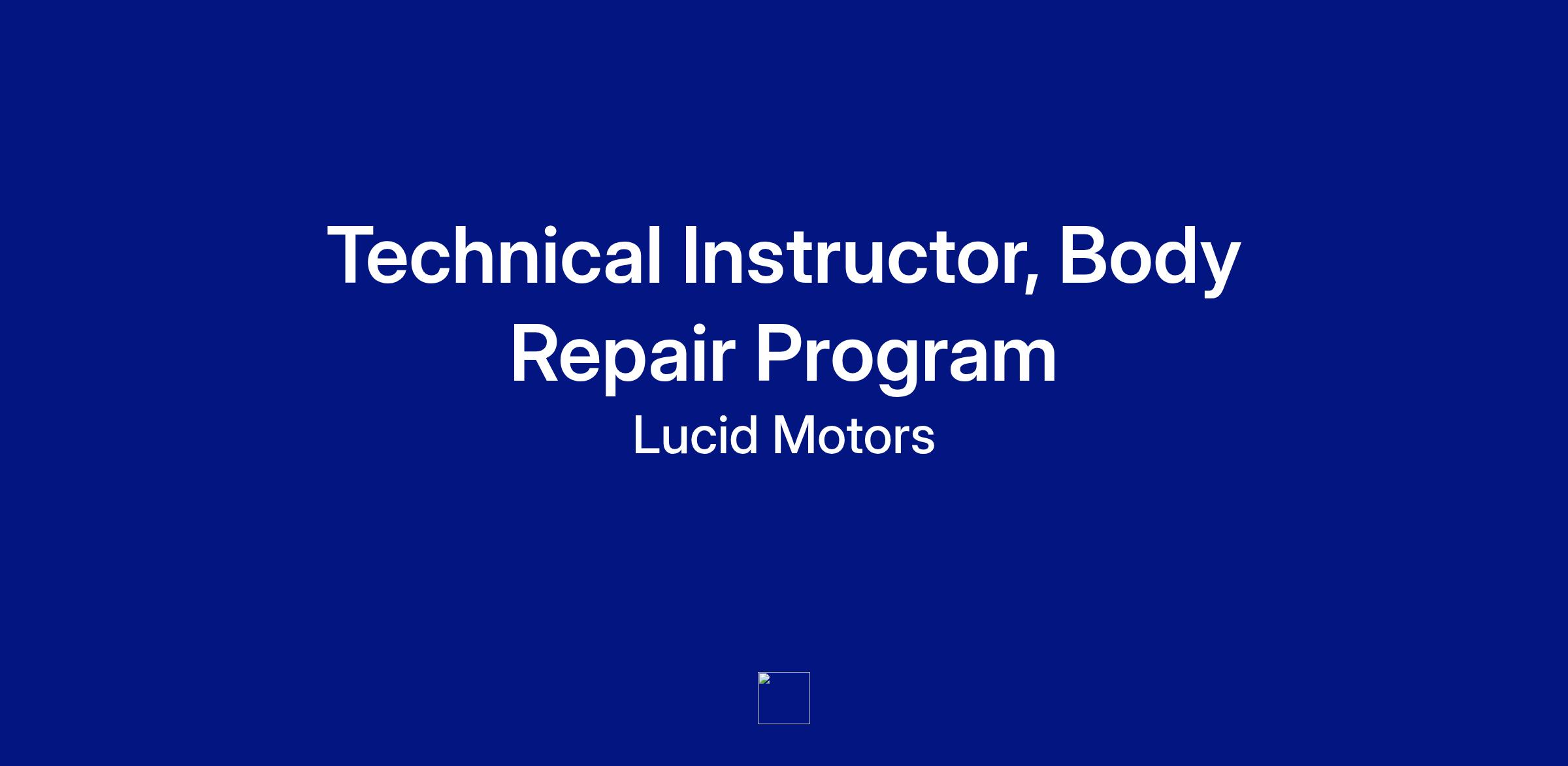 The Body Repair Program Technical Instructor position requires someone who is flexible, proactive, and highly organized. Individuals should have a passion for and a deep understanding of Collison repair and possess outstanding communication, presentation, and organizational skills. Millbrae is the central training hub where technicians come to refine their skills. This role is fully on-site at the Lucid Service Center in Millbrae, CA. It is not a remote or hybrid position, and team members are required to be on-site five days per week. We are accepting applications to review in January 2026.