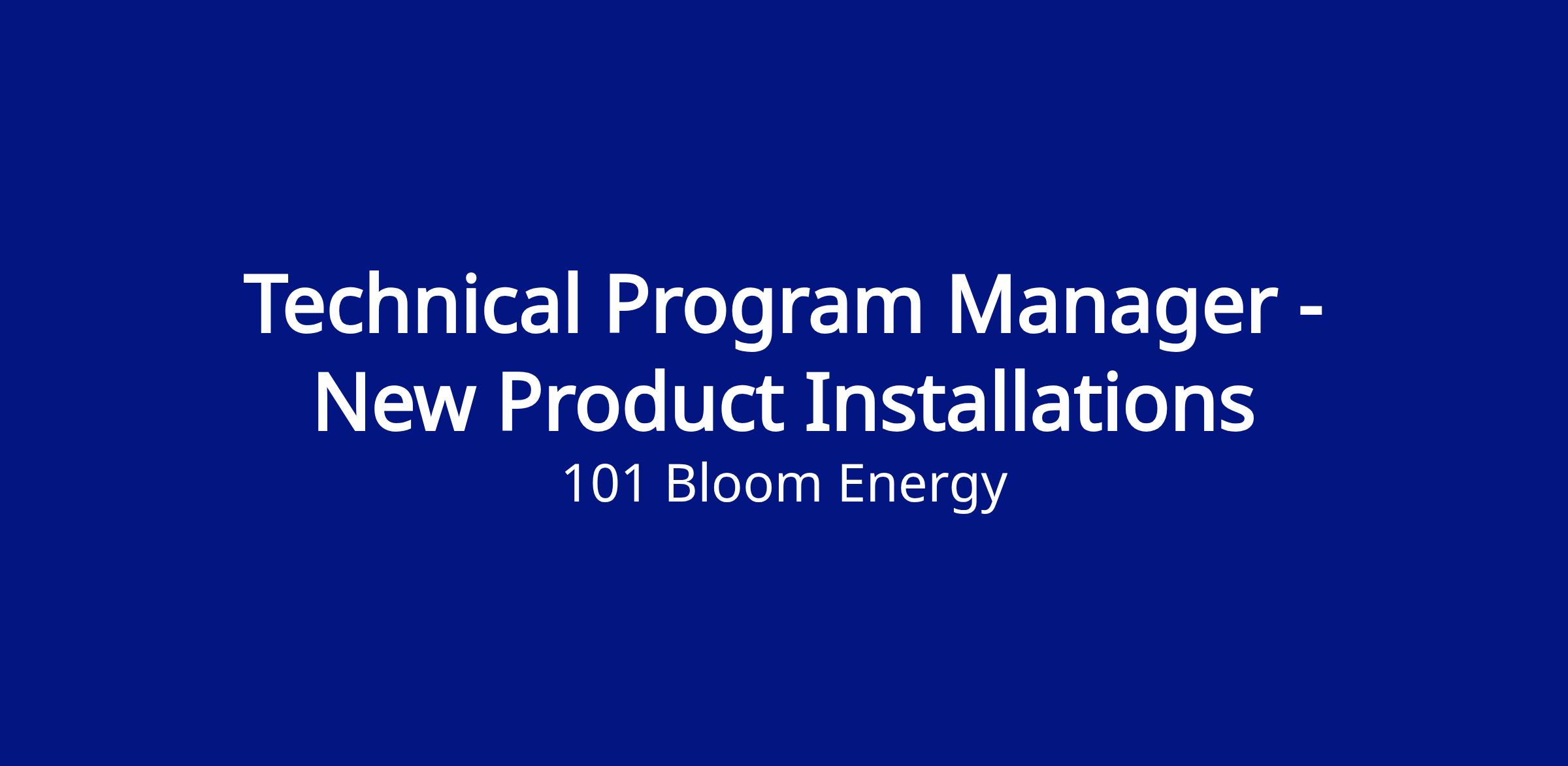 The Technical Program Manager - New Product Installations plays a critical role in strengthening Bloom Energy’s installation quality, constructability oversight, specification governance, and documentation accuracy. By focusing on high‑impact, non‑EPC projects and large‑scale installations, this role ensures that technical expertise is applied where it delivers the greatest financial and operational benefit. The position directly supports Bloom’s ability to execute installations with consistency, quality, and reduced risk across an expanding product portfolio.