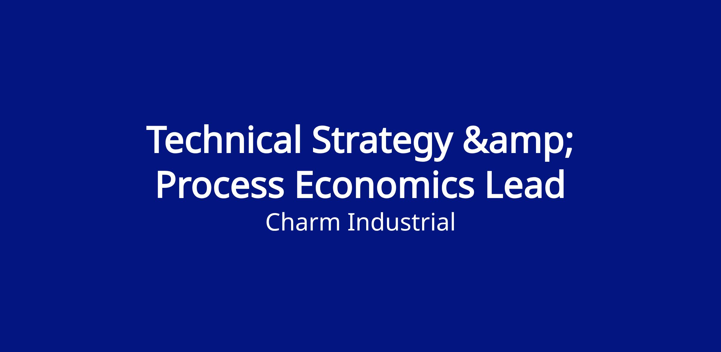 As Charm’s Technical Strategy & Process Economics Lead, you will be at the center of these efforts. You will support Company-wide strategic decision making and capital allocation planning through analyses that consider the standalone and shared costs and benefits of various initiatives. Your analyses will take the form of rigorous technoeconomic models that will provide significant scientific, engineering, and financial conviction for senior leadership. You will be a key conduit between departments, helping to effectively ideate and iterate on what the future Charm looks like.