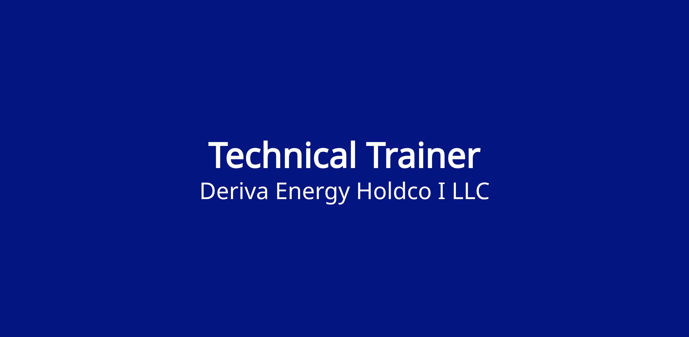 The Technical Trainer at Deriva Energy is responsible for independently delivering complete technical training modules for wind, solar, and battery energy systems across the United States. This role focuses on hands-on instruction, classroom facilitation, trainee assessment, and field readiness to ensure technicians develop the skills and knowledge required to safely install, operate, maintain, and troubleshoot renewable energy assets.