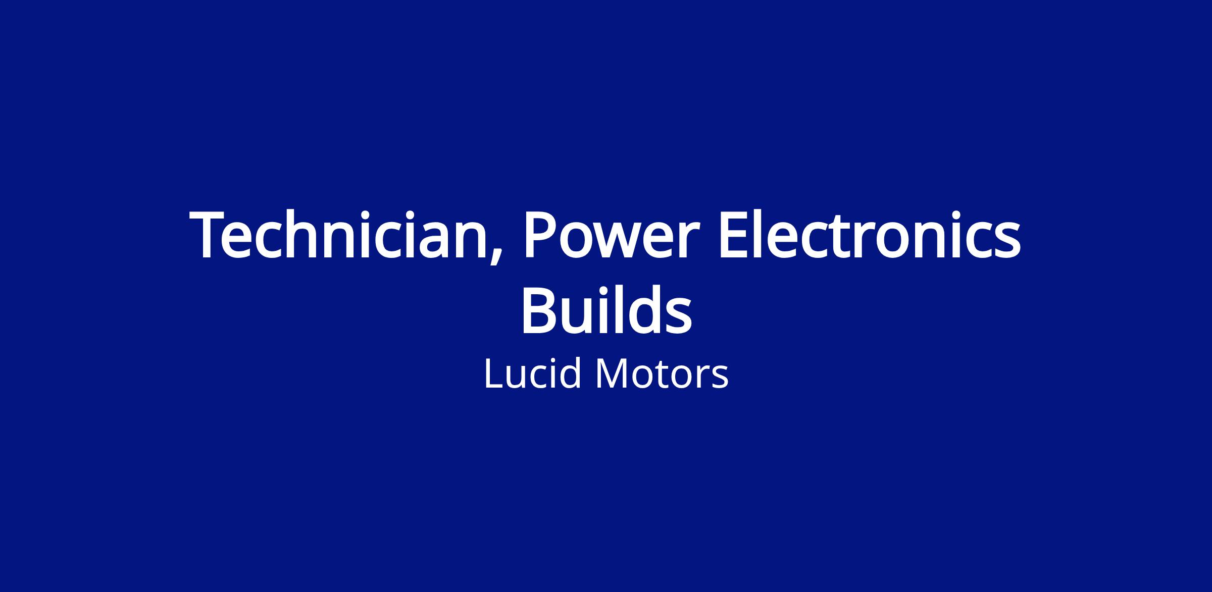 We are currently seeking a Power Electronics Prototype Build Technician The level will depend on the candidate’s experience. Our ideal candidate exhibits a can-do attitude and approaches his or her work with vigor and determination. Candidates will be expected to demonstrate excellence in their respective fields, to possess the ability to learn quickly and to strive for perfection within a fast-paced environment.