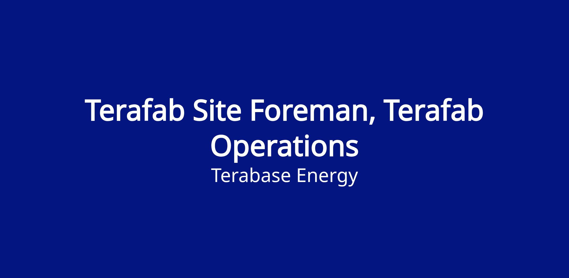 Terabase is looking for an experienced solar Foreman for our Terafab onsite team. The onsite team oversees, coordinates, and successfully completes assigned utility solar construction projects. The Foreman reports to the Construction Management Office, facilitating all onsite Terafab activity and works closely with the Terafab project manager of record and the Deployment Team Lead. The Foreman acts as the onsite lead for a team of maintenance technicians and system engineers. Additional responsibilities include daily reporting, assisting clients with daily planning, training clients, documenting the use of the Terafab units, and checking material availability